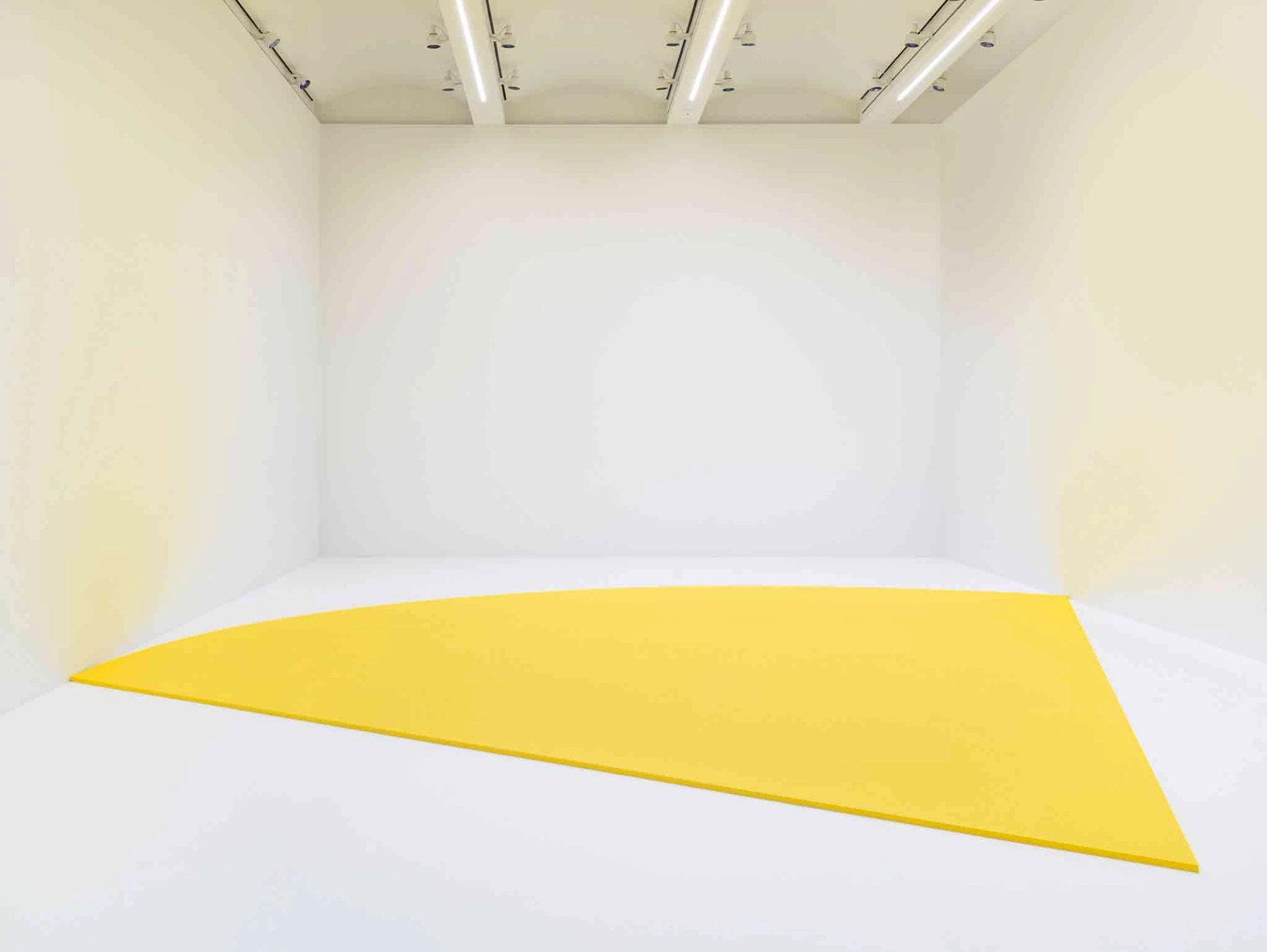 There are more than a few greatest hits here. The show includes, for example, his so-called first and only Abstract Expressionist painting, made after a visit to Giverny in 1952, with a stunning mottled green surface that owes much to Monet; and the Yellow Curve floor sculpture from 1990—a thin flat panel installed on the ground of a specially created room—that floods the space with yellow light. Also featured is a 1987 painting made of three separated dancing grey shapes (in oil on canvas), in which the wall is as much a part of the piece as the panels themselves.