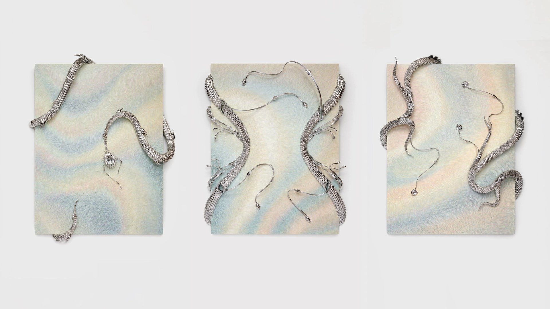 Three works by Anastasia Komar at the Management stand at Independent. Courtesy Management
