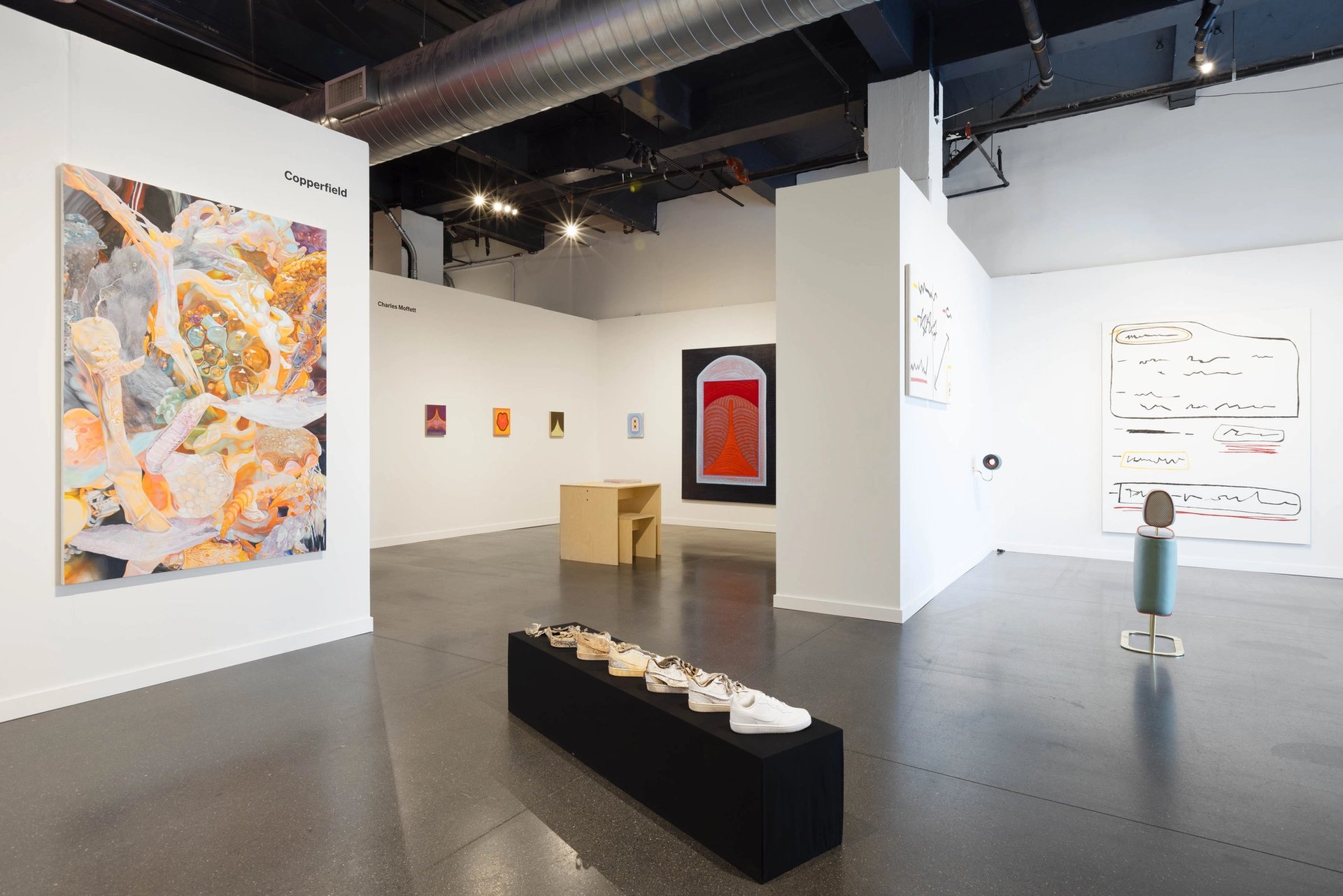 A view of Copperfield and Charles Moffet galleries' respective stands. Photography by Leandro Justen, Courtesy Independent