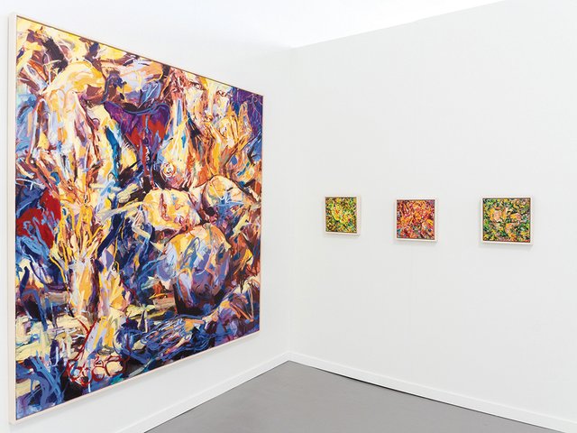 David Nolan's stand is dedicated to large canvases by Iraqi-American artist Vian Sora. Courtesy David Nolan Gallery, photography by Lance Brewer
