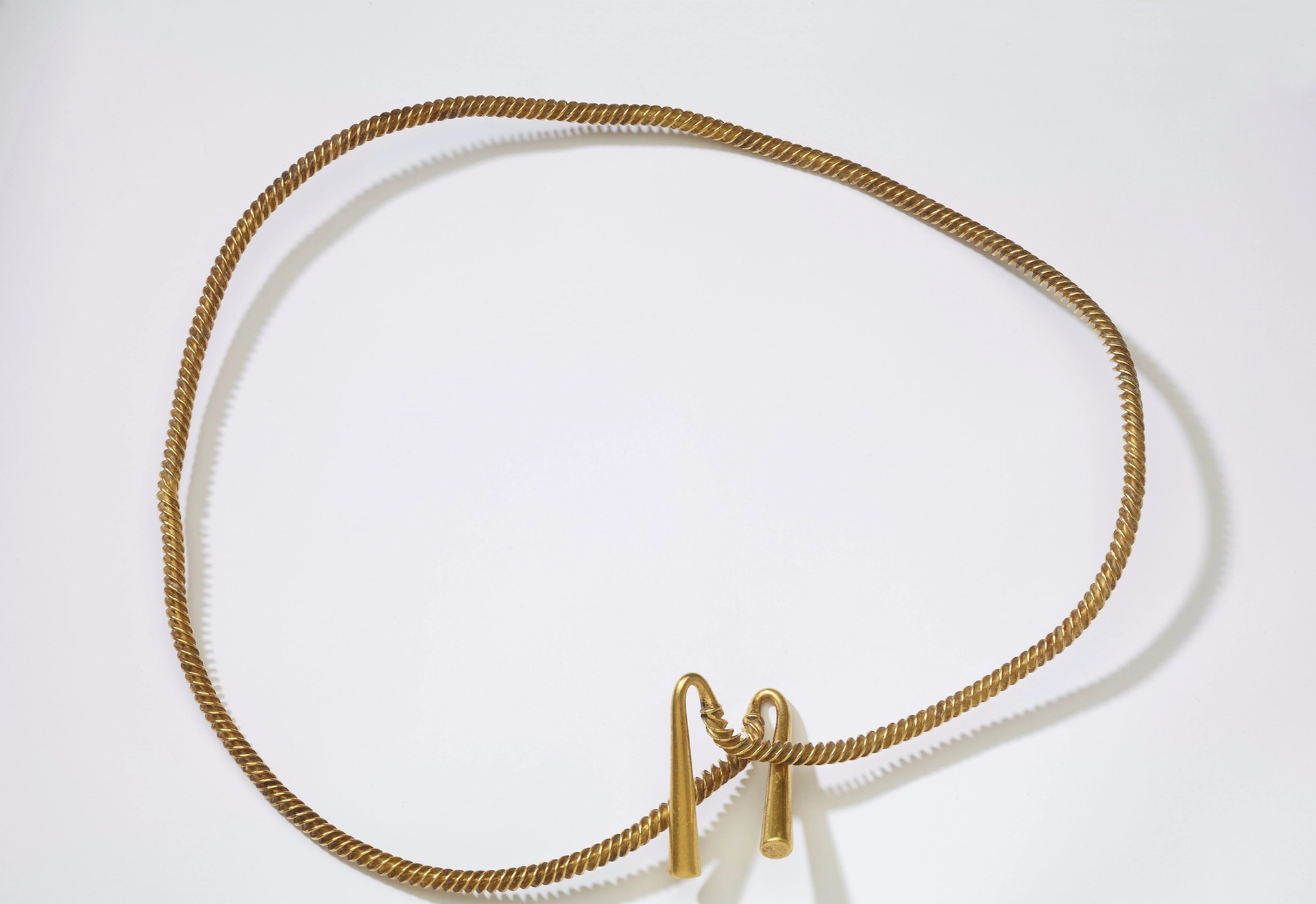 The 3,000-year-old torc is created from a cross section bar, carefully twisted into a spiral. The object, weighing 730g, was found by a metal detectorist in a ploughed field in 2015. It was then secured for Ely Museum in 2017 after a major local fundraising campaign. It is considered one of the most significant discoveries of its kind in England for over a century and is much larger than most torcs, which usually fit around an arm.