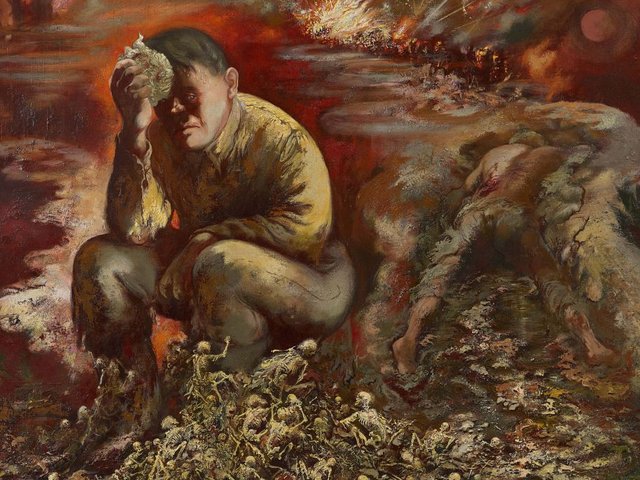 It was one of the biggest art scandals of the Weimar Republic. George Grosz, whose caricature-like figuration criticised the social and political realities of Berlin in the early 20th century, stood trial for a drawing that showed Jesus on a cross with a gas mask, titled Maul halten und weiter dienen (Shut up and do your duty).