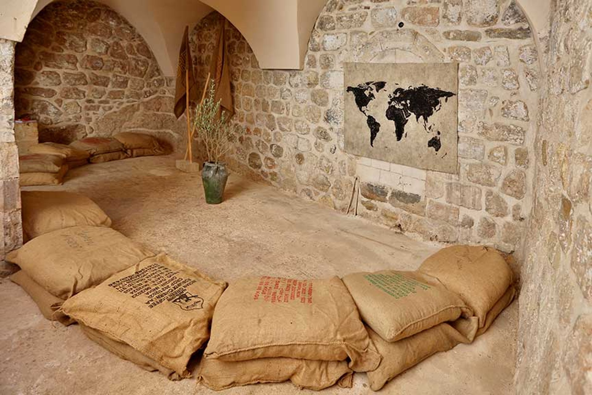 Viewers are invited to sit on jute bags, drink tea and contemplate a borderless world map made of local felt and notions of “intercultural Planetary Citizenship” in the Sardinia-born Michele Ciacciofera’s installation Terra Madre. The Brazilian duo Rafael Lain and Angela Detanico’s video Flower Fields, projected directly onto the 200-year-old walls of a former camelry, transforms images of gardens into a time-lapse of the Big Bang. Other participants delve straight into the region’s political realities. A four-decade insurgency has scarred the southeast, and Ayşe Erkmen’s monumental swathe of fabric draped across a hilltop visible from Mardin is called 1907/32, referencing the Hague Convention article that requires negotiating with the bearer of a white flag on the battlefield. In Crops, Erkmen has projected a video boundary around a century-old military crest of arms painted on the interior of a mansion that was taken over by the German army after its Armenian owner was expelled during the First World War-era genocide. At the same venue, Aslı Çavuşoğlu’s Buried Intentionally, in which straw mats are topped with ceramic masks, draws on this chapter of history repressed by the official narrative. The late photographer Yıldız Moran’s images from her 20th-century travels document Mardin’s multicultural past.