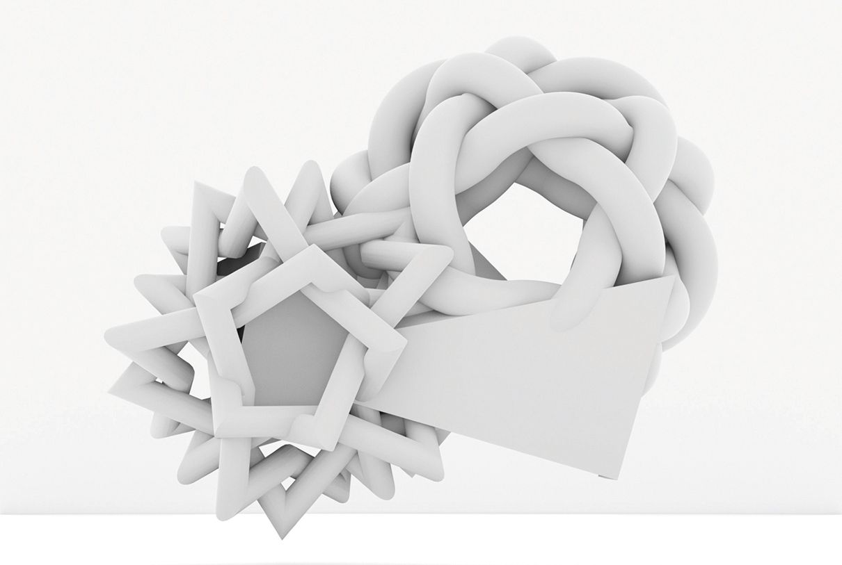 And now, in collaboration with 1OF1—the collectors of top-flight digital art founded by the venture capitalist, collector and patron Ryan Zurrer—Fischer will be bringing the same concern with entropy to CHAOS #1–#500, a series sold in 2022 via NFTs (non-fungible tokens, programmable certificates of authenticity sitting on the blockchain) by connecting each of the 500 digital sculptures to its own NFT. In that series, Fischer created video sculptures which pair 3D renderings of everyday objects—a tropical fish and a computer keyboard; a wooden spoon an a clear ziplock bag; a vintage road map of Europe and a garden trowel—that beguilingly rotate, merge and demerge as each digital sculpture plays.