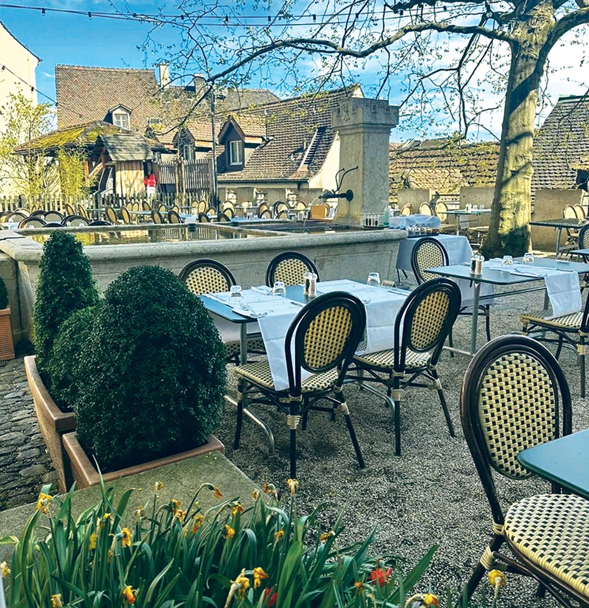 The beer garden at Au Violon enjoys commanding views over Basel’s rooftops Courtesy Au Violon