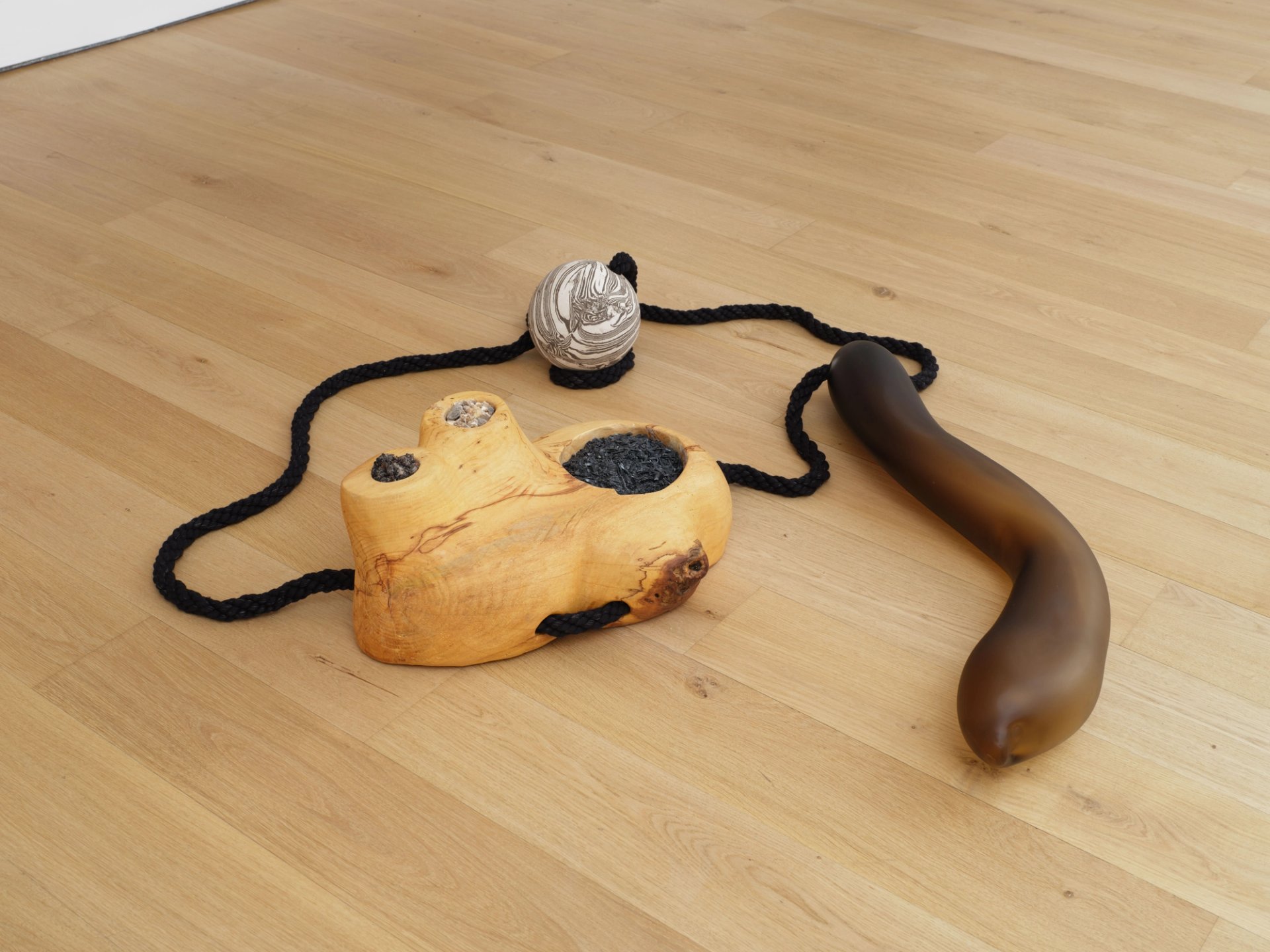She fuses in-depth research with her own lived experience. The result is a practice with a distinctive coherence between materials and concepts, where references to present-day geopolitical and ecological realities sit alongside forms, metaphors and symbols that speak to broader timescales and narratives and disparate belief systems.