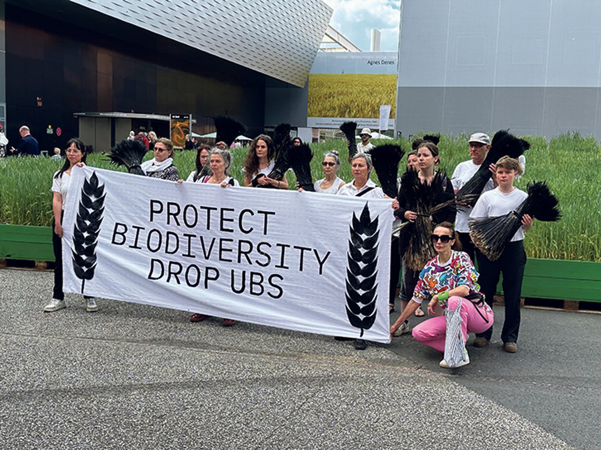 Protestors on the Messeplatz yesterday accused UBS of investing $210bn in fossil fuels in recent years Gareth Harris