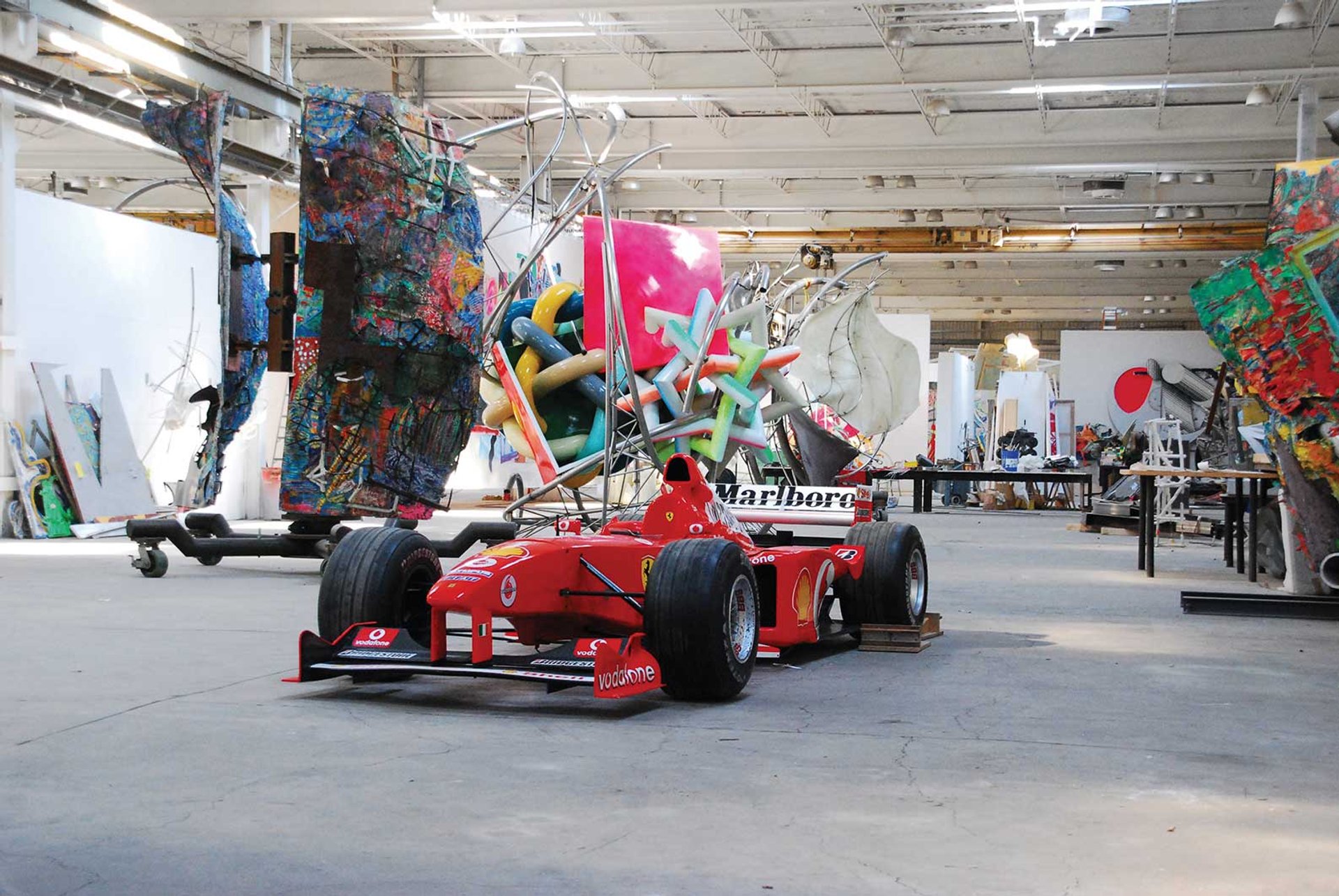 Driving ambition: a Ferrari Formula 1 car (pictured in 2009) dominated Stella’s studio in Rock Tavern, New York
