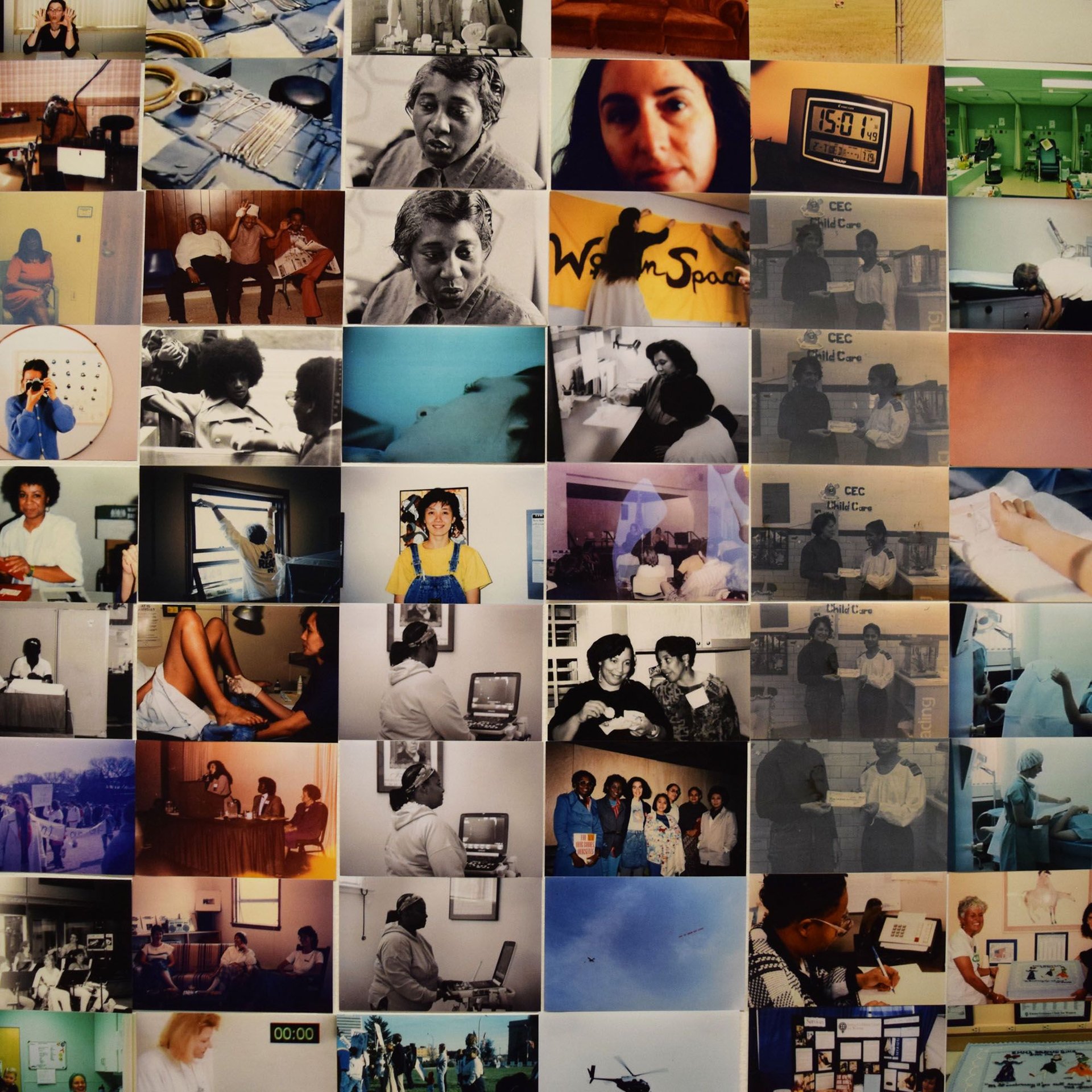Detail of Carmen Winant, The Last Safe Abortion (2023) at the Whitney Biennial 2024. The installation features a collection of 2,700 photographs capturing the essential care provided day after day for half a century at clinics, hospitals and other abortion providers in the US’s Midwest
