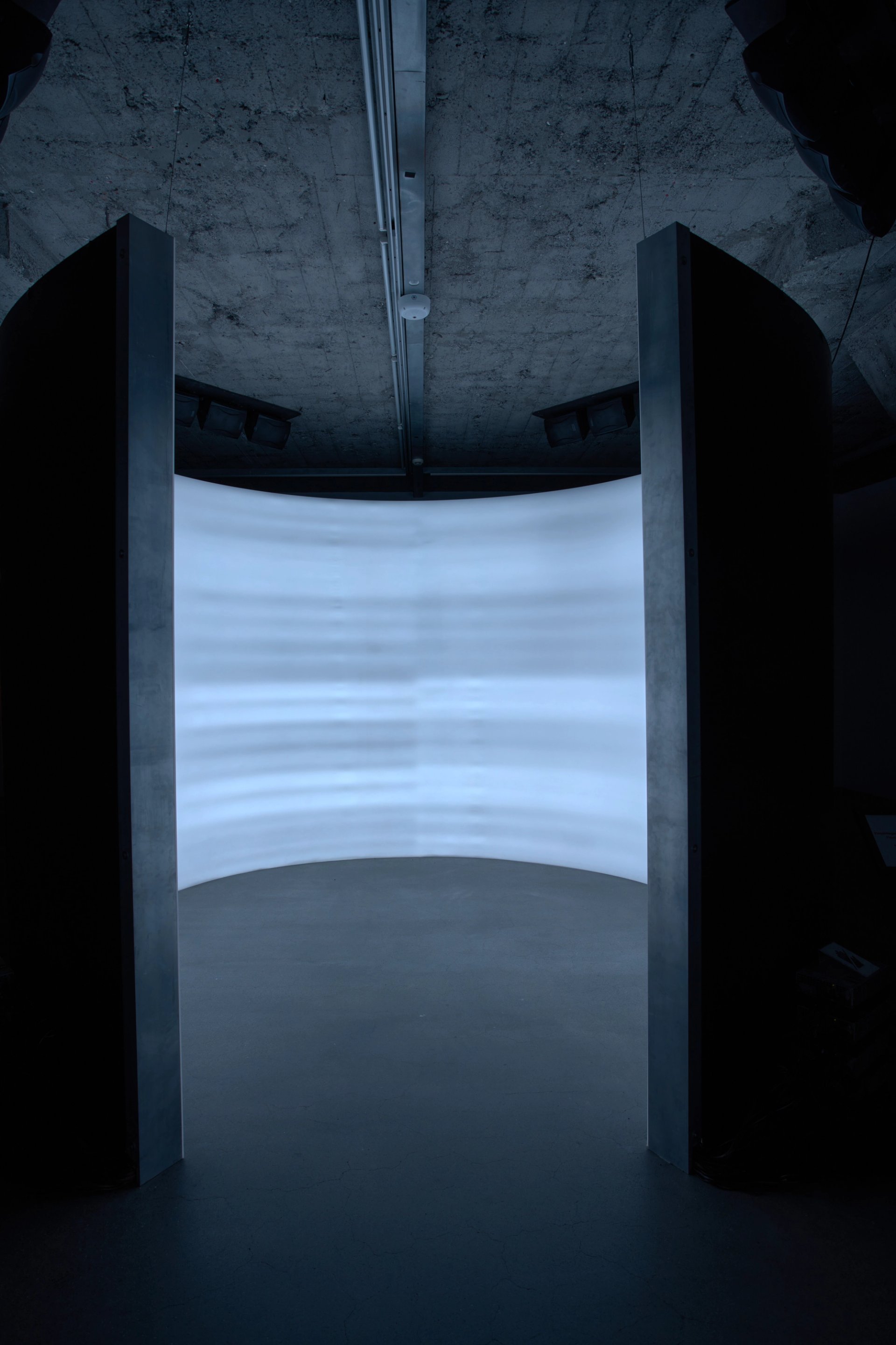 An adjacent piece nods to a less explosive aspect of Icelandic culture: the country’s incredibly short daylight hours in winter. Living with little sunlight can cause seasonal affective disorder (SAD)—a form of depression brought on by the changing of the seasons—and while Icelanders have been shown to be remarkably resilient to this condition, mental health is still a pressing issue (the country has the highest rate of antidepressant use in the world). Jónsi has created what he describes as possibly the “biggest SAD machine in the world”—a large curving screen that envelops visitors in the light of 60,000 LED lamps, while beautiful harmonies, clicks and scratches call out from the void. Viewers are encouraged to wear sunglasses when inside.