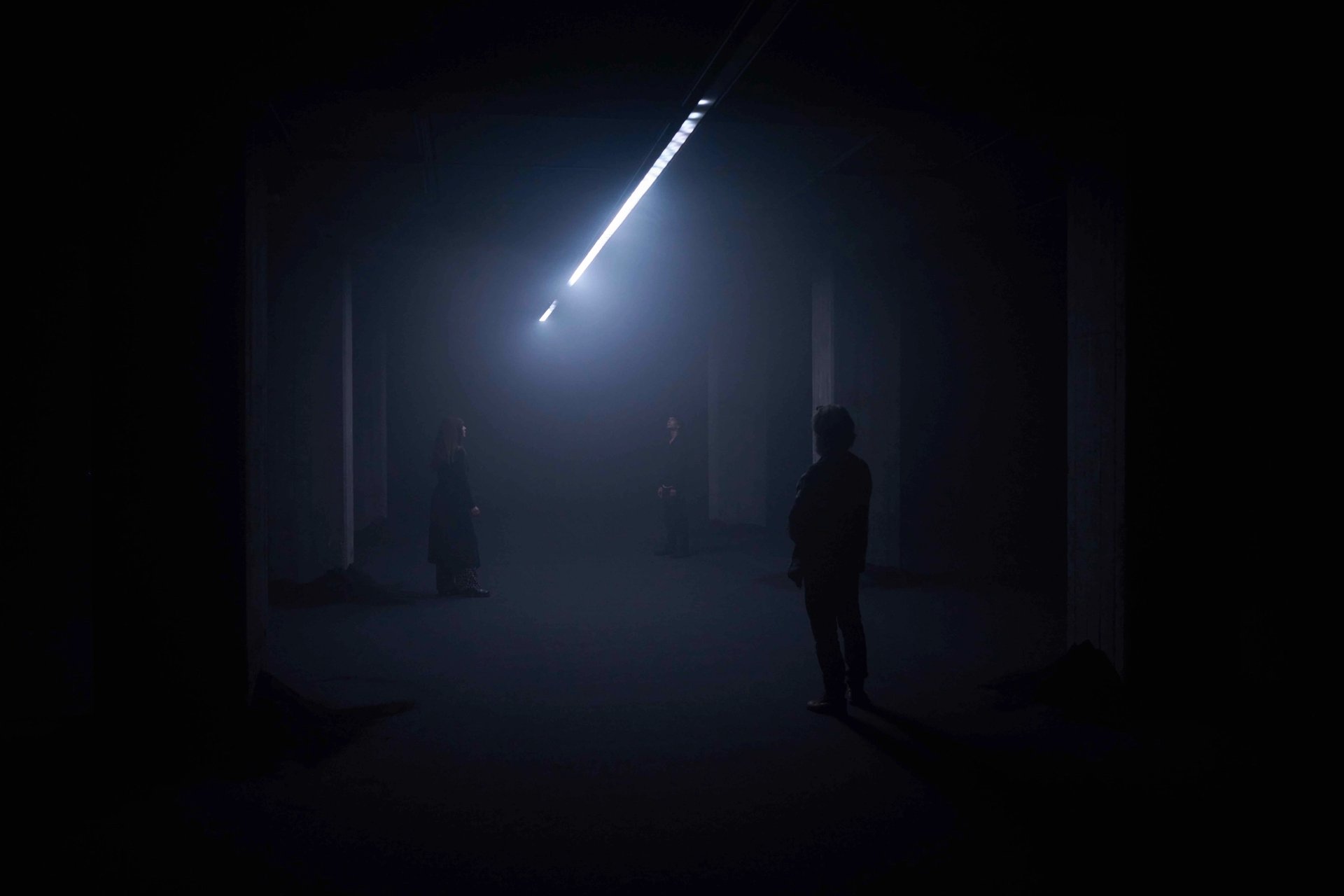 FLÓÐ (Flood), which has been shown in a different iteration at Seattle’s National Nordic Museum last year, is another work of pure feeling. Visitors enter a dark room to be engulfed by mist and a hard-to-place scent. Above them, a single thin bulb, stretching almost the length of the room, flows light back and forth, while Jónsi’s falsetto voice again echoes through the space, together with rumbling and a sound similar to falling glass. It is reminiscent of the patterns and rhythms of nature but also embodies something deeply unsettling. “It’s depression basically,” Jónsi says. “Like an apocalyptic doom forecast. It’s about the big wave that is gonna come and, you know, just drag us all away.” Moodiness, he says, is important to him. “I'm kind of a drama queen. I want a little bit of drama.”