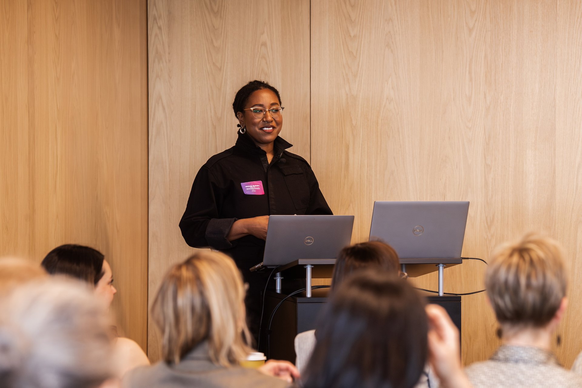 Whitney R. McGuire, director of sustainability at the Solomon R. Guggenheim Museum, discussed her pioneering work at the intersection of the climate crisis and social justice during a keynote presentation at Art Bridges’ 2024 spring convening Photo by Meredith Mashburn