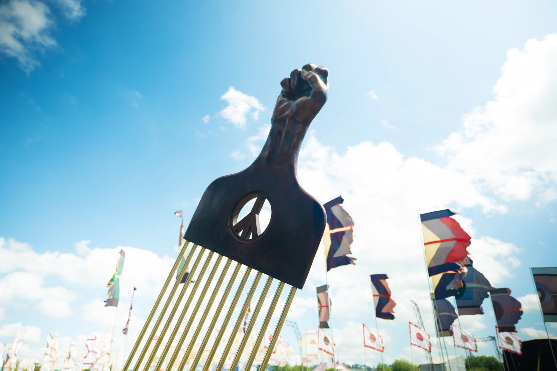 Hank Willis Thomas’s All Power to All People at Glastonbury Festival marks the launch of Level Ground, a “new non-profit organisation aimed at revolutionising and democratising public art by prioritising inclusion and representation”, according to a project statement