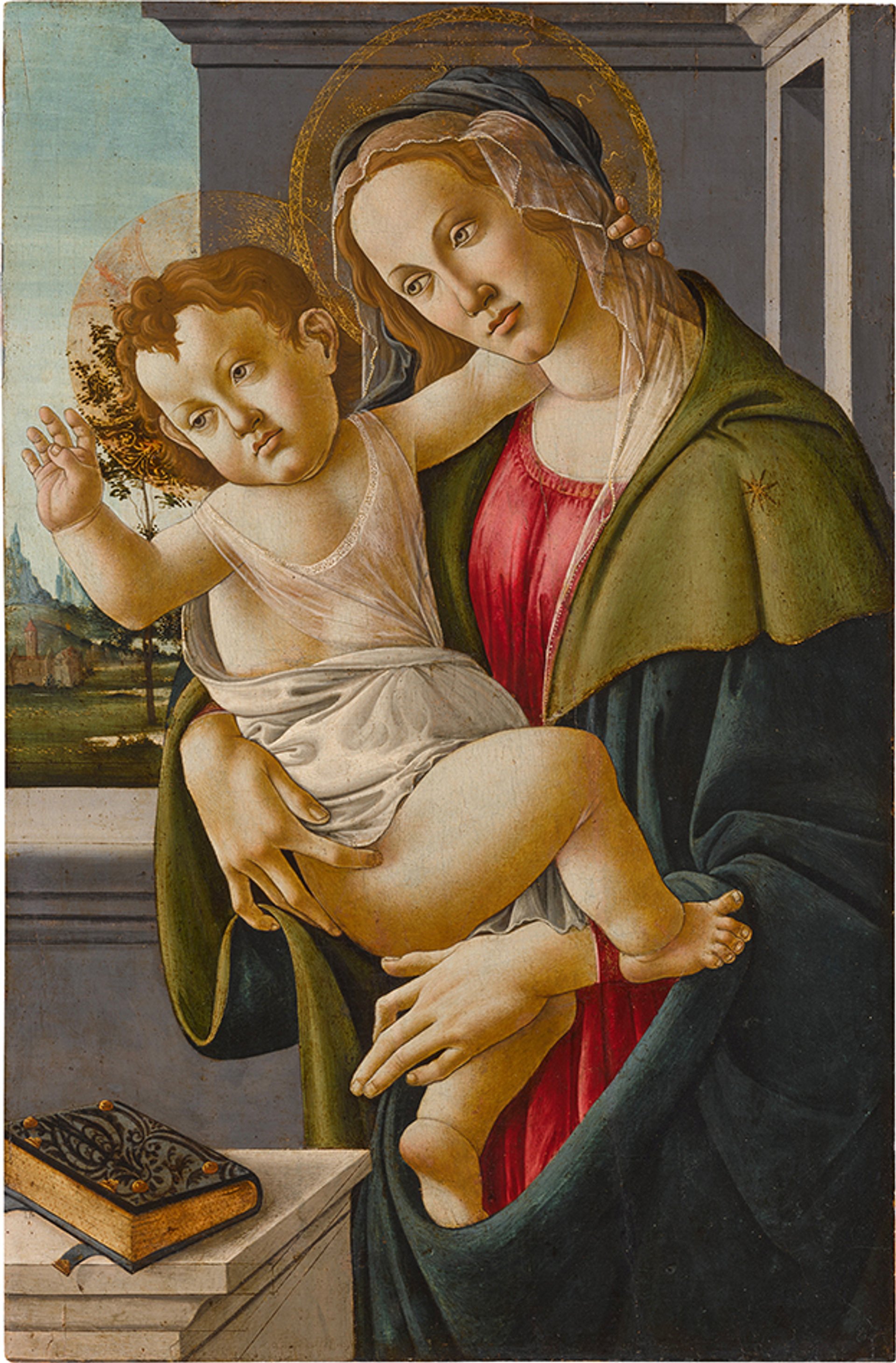 Botticelli and Studio, The Virgin and Child, with a landscape beyond (1490s)