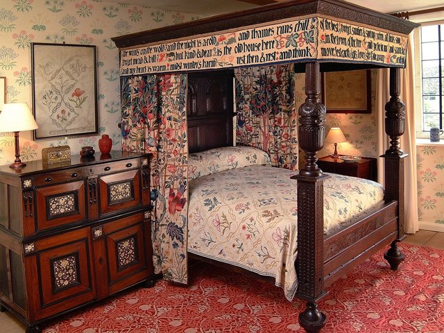 In collaboration with others, including the historian Charles Winston and Whitefriars Glassworks, Morris led the recovery of lost medieval techniques and skills. “William Morris was instrumental in getting mouth-blown English antique glass made—this nice kind of glass with the variegations through it,” Kelly says, pointing out the ripples, bubbles and striations that suggest the line and flow of drapery, wings or hair. “Prior to this, glass is a much flatter-looking thing—much less interesting.”