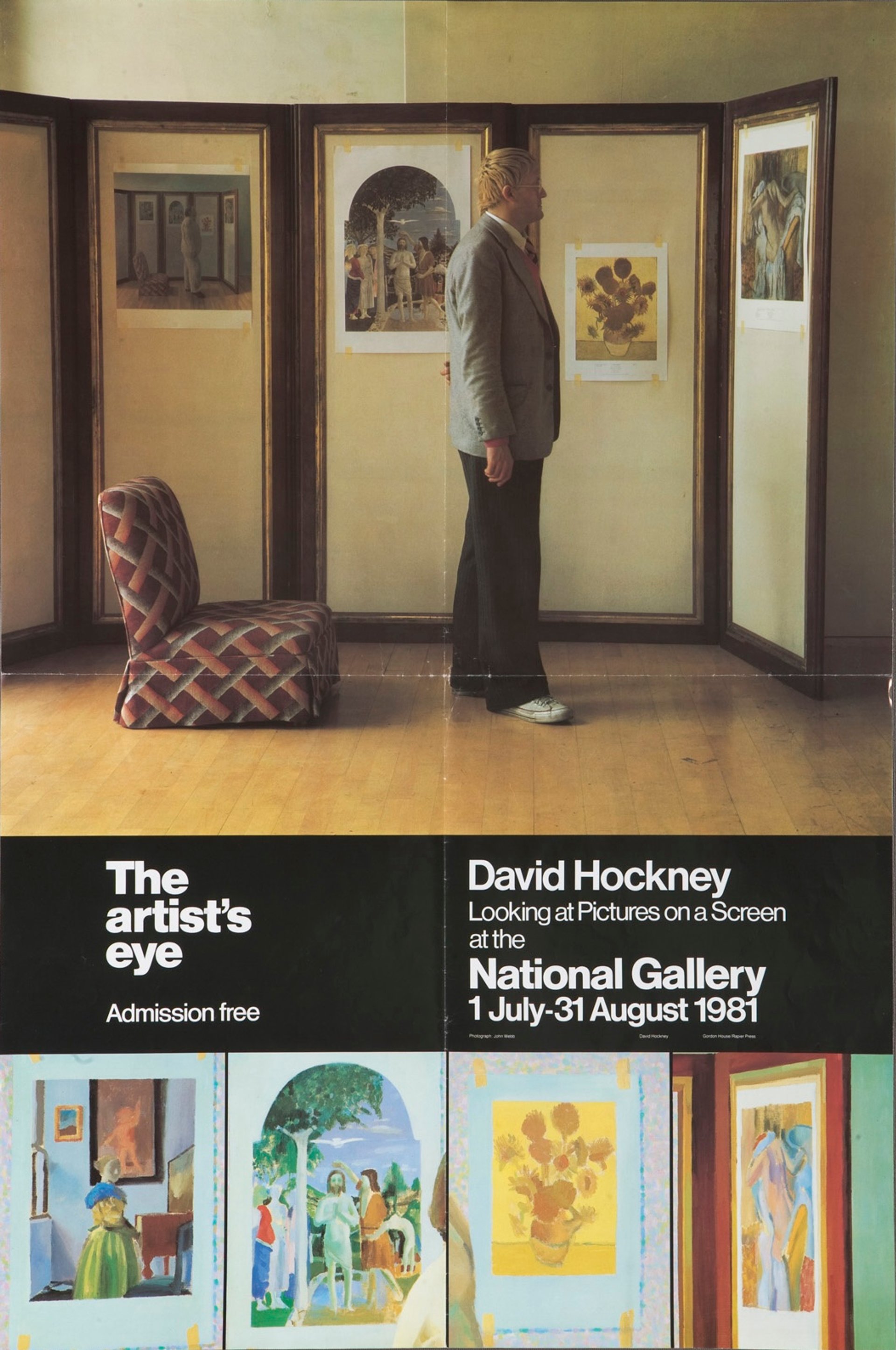 Hockney included The Baptism of Christ in The Artist‘s Eye, an exhibition he curated at London‘s National Gallery in 1981. For the poster promoting the show,, he remade Looking at Pictures on a Screen—inserting himself in curator Henry Geldzahler’s place