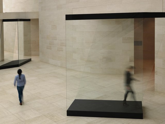 Bruce Nauma's Vices and Virtues (1988) at left and Do Ho Suh's Fallen Star (2012) at right on the University of California San Diego campus Photo by Philipp Scholz Rittermann