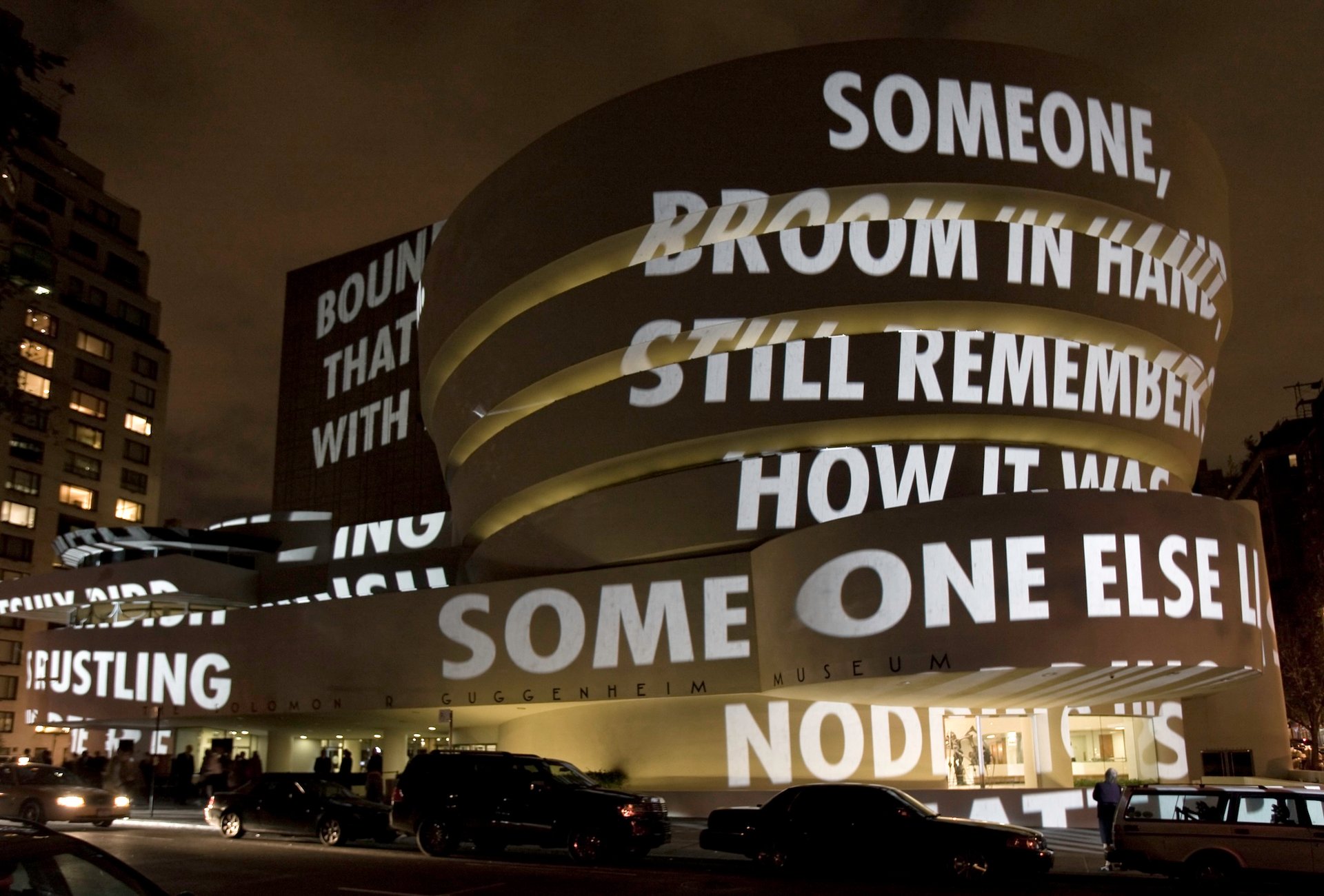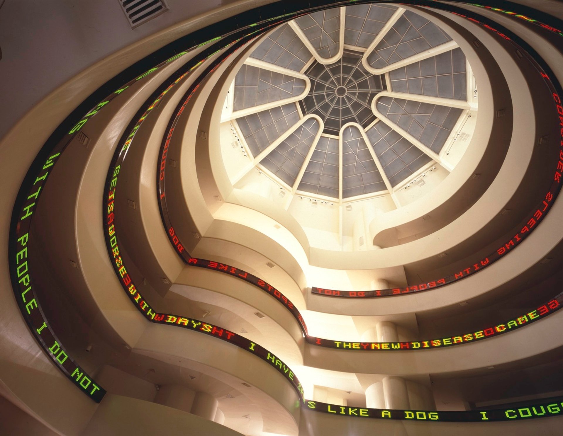 2008: Jenny Holzer, For the Guggenheim, 2008. Solomon R. Guggenheim Museum, New York © 2024 Jenny Holzer, member Artists Rights Society (ARS), NY. Photo: Kristopher McKay © Solomon R. Guggenheim Foundation, New York