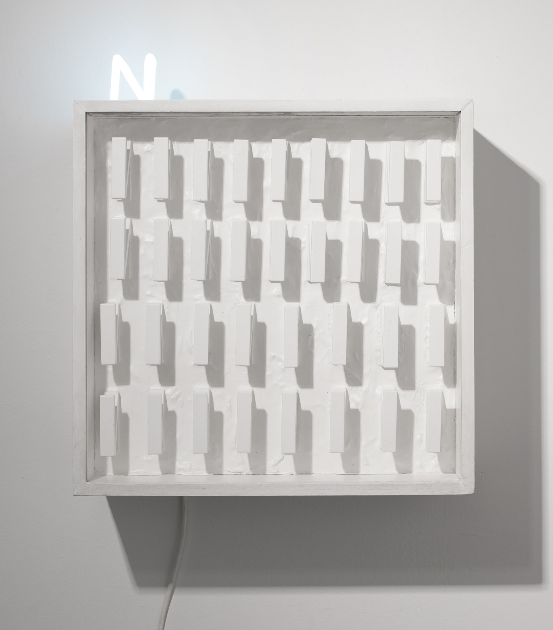 Chryssa Vardea's White Plaster with neon N's (1975-76) Courtesy Blue Velvet, Zürich