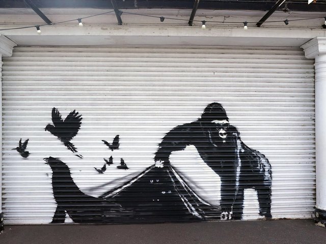 This week’s animal collection follows another nature-themed mural revealed by Banksy in March. For that work, the artist spread green paint on a wall in Finsbury Park, north London, behind a heavily pruned tree, creating the impression of missing foliage.