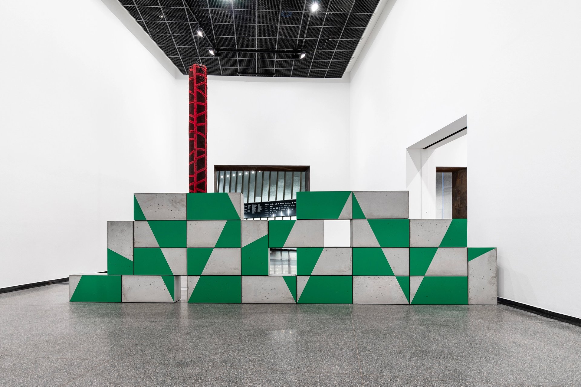 In her sculptures, time-honoured avant garde principles meet the forms and practices of popular culture. Born of much instinctive experimentation in the studio, her work engages, often exuberantly, with diverse sculptural processes—from casting and welding to stacking and balancing—and properties—from weight and solidity to patina, texture and colour. As well as exploring gallery space in often unexpected ways, she has developed a rich seam of public sculpture, with major permanent works including a playground in east London.