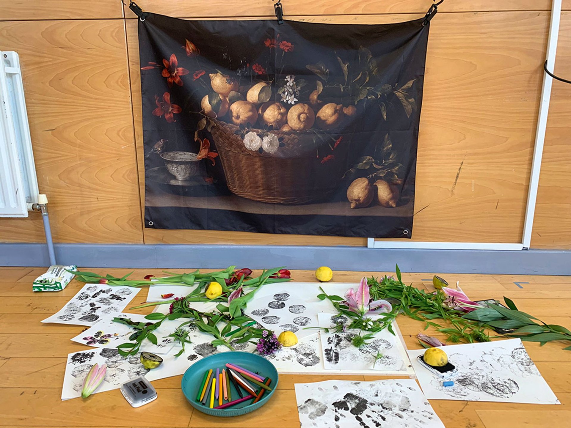 A fabric image of Juan de Zurbarán’s Still Life with Lemons in a Wicker Basket (1643-49) is the starting point for talks and creativity Courtesy of Greater Shantallow Community Arts, Derry