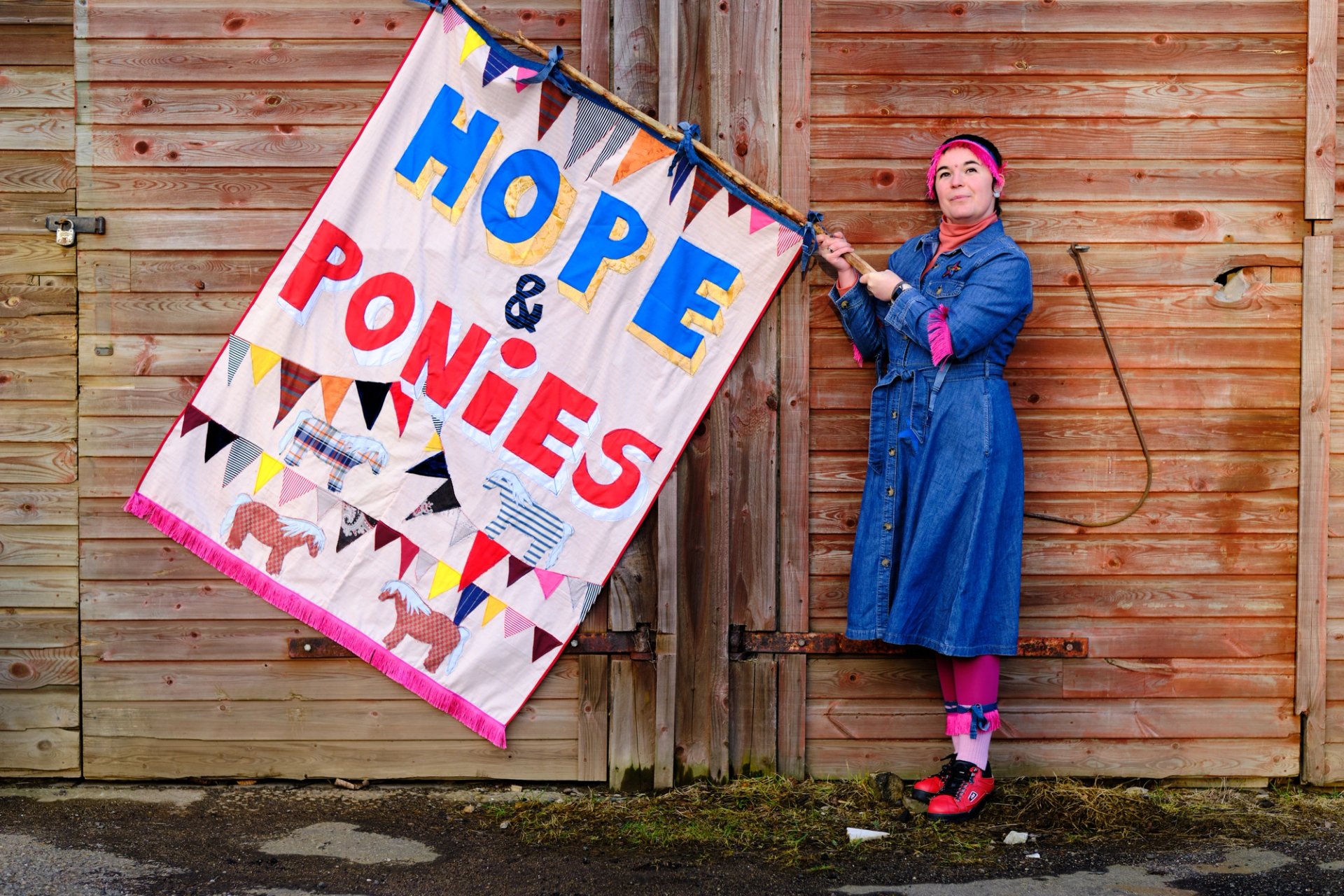 This year the festival will also present an extensive programme of free events, including Hope & Ponies, a workshop and installation of banners by Alister Lownie, Katherina Radeva with Nadia Sokolenko—known collectively as Two Destination Language. Handmade from recycled fabric, each banner bears a different definition of hope. Some tackle major issues—war, the climate crisis, politics—while another calls simply for a cup of hot chocolate on a winter’s day.
