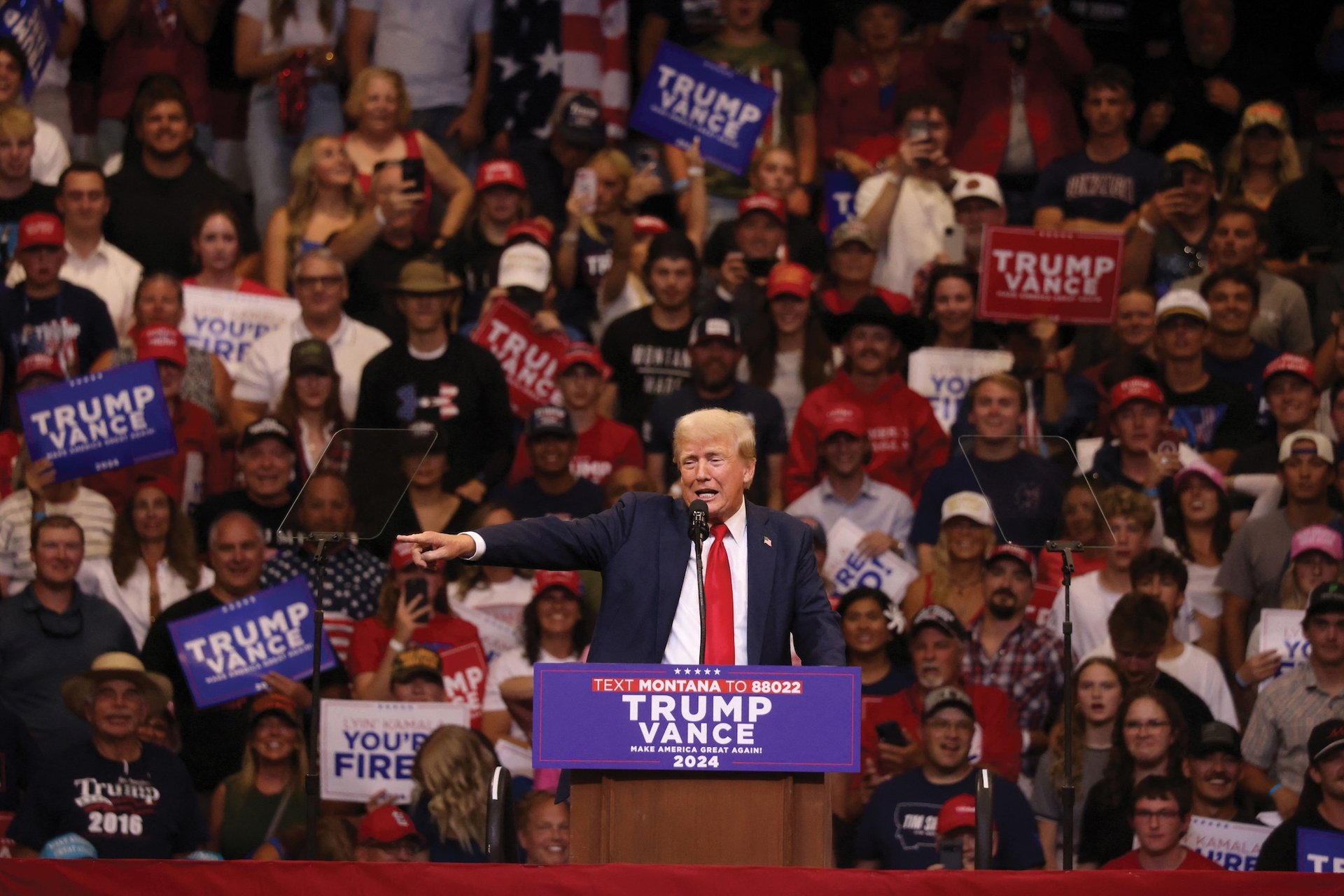 Republican presidential nominee and former US President Donald Trump at a campaign rally in Bozeman, Montana, on 9 August Reuters / Jim Urquhart