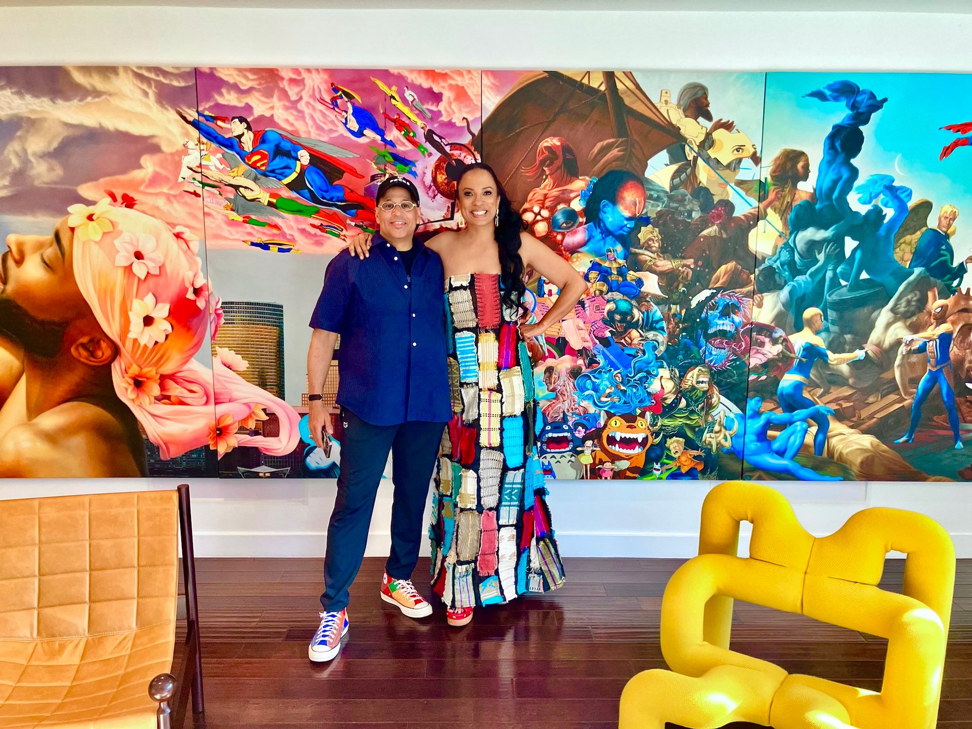 Los Angeles-based collectors Lyndon and Janine Sherman Barrois in front of a painting by the Miami-based artist NFN Kalyan Photo by Terrell Tilford