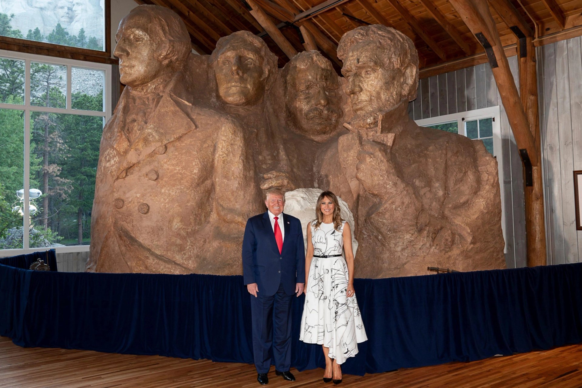 Then-president Donald Trump and First Lady Melania Trump pose together during a July 2020 tour of the Sculptor Studio at Mount Rushmore National Memorial in Keystone, South Dakota White House Photo / Alamy Stock Photo