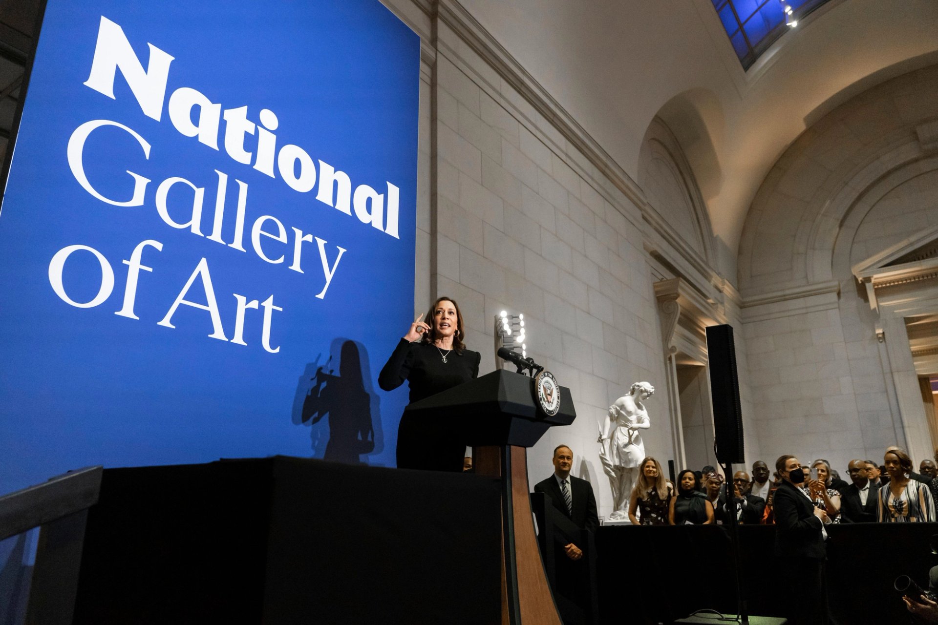 Vice President Kamala Harris speaks at the opening gala of the exhibition Afro-Atlantic Histories at the National Gallery of Art in Washington, DC in April 2022 Joshua Roberts / Pool via CNP / MediaPunch Inc / Alamy Stock Photo
