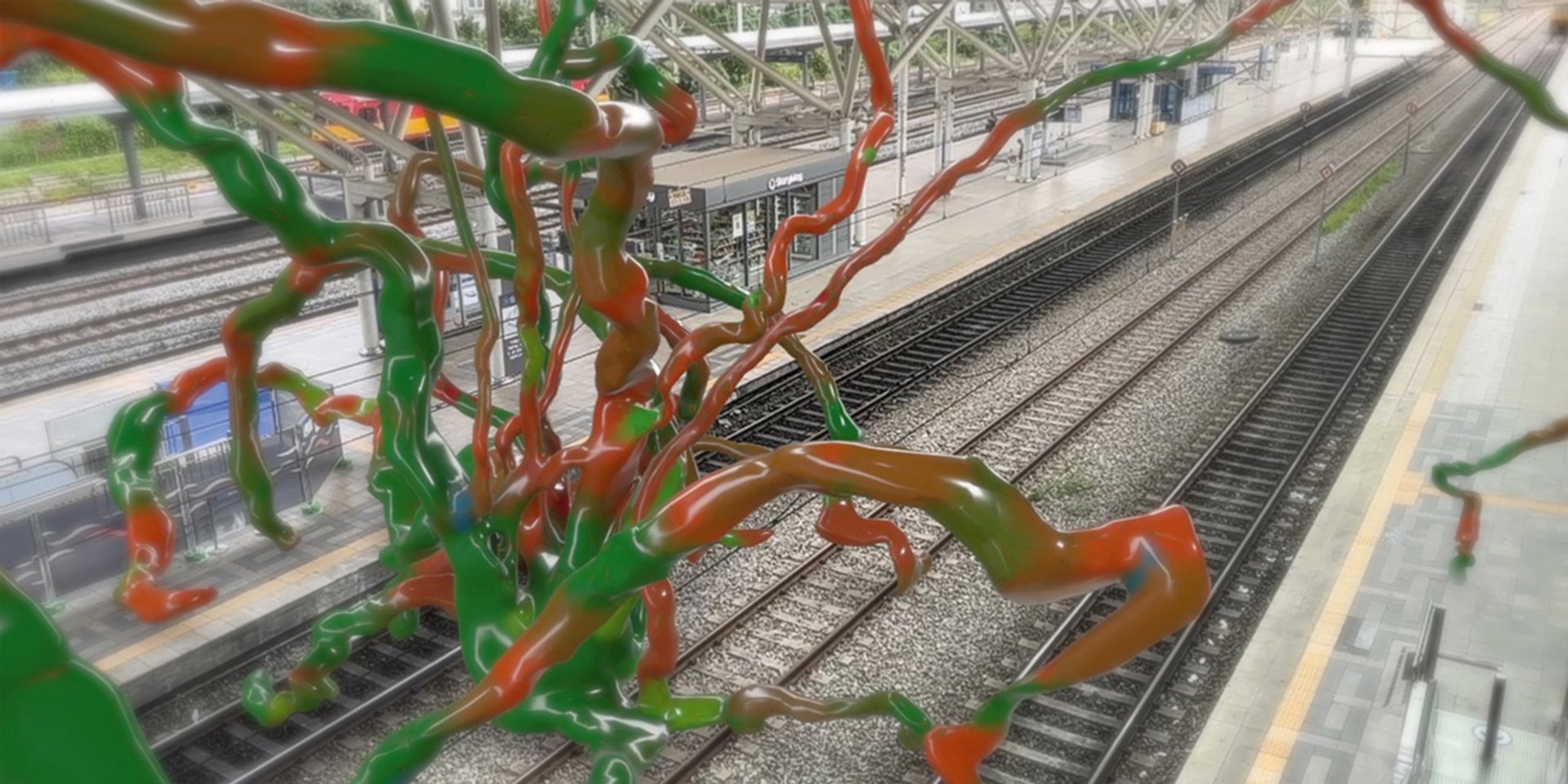 Syncope is a high-resolution moving image project which can be hijacked through an app to access its filmic spaces by planting digital data; the data then entrenches itself, snaking through the film and appearing like a viral hack. Sojung Jun also turns to sound as a motif, a means by which to measure speed and the various ways we live and engage in the world.