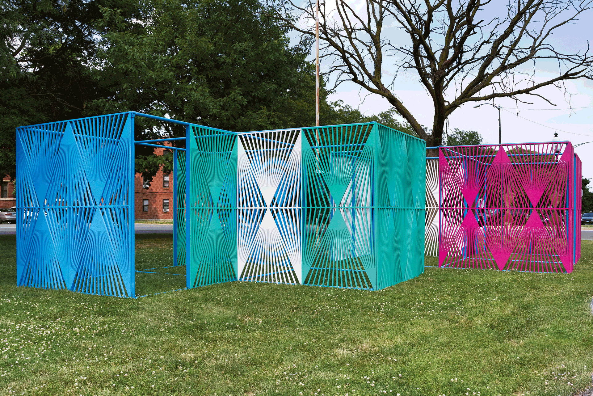 La Casa de Todos/Everyone’s Home (2024) is a public work Soto created in Chicago, reimagining an existing sculpture by referencing the rejas (wrought iron fences) that are found throughout Puerto Rico