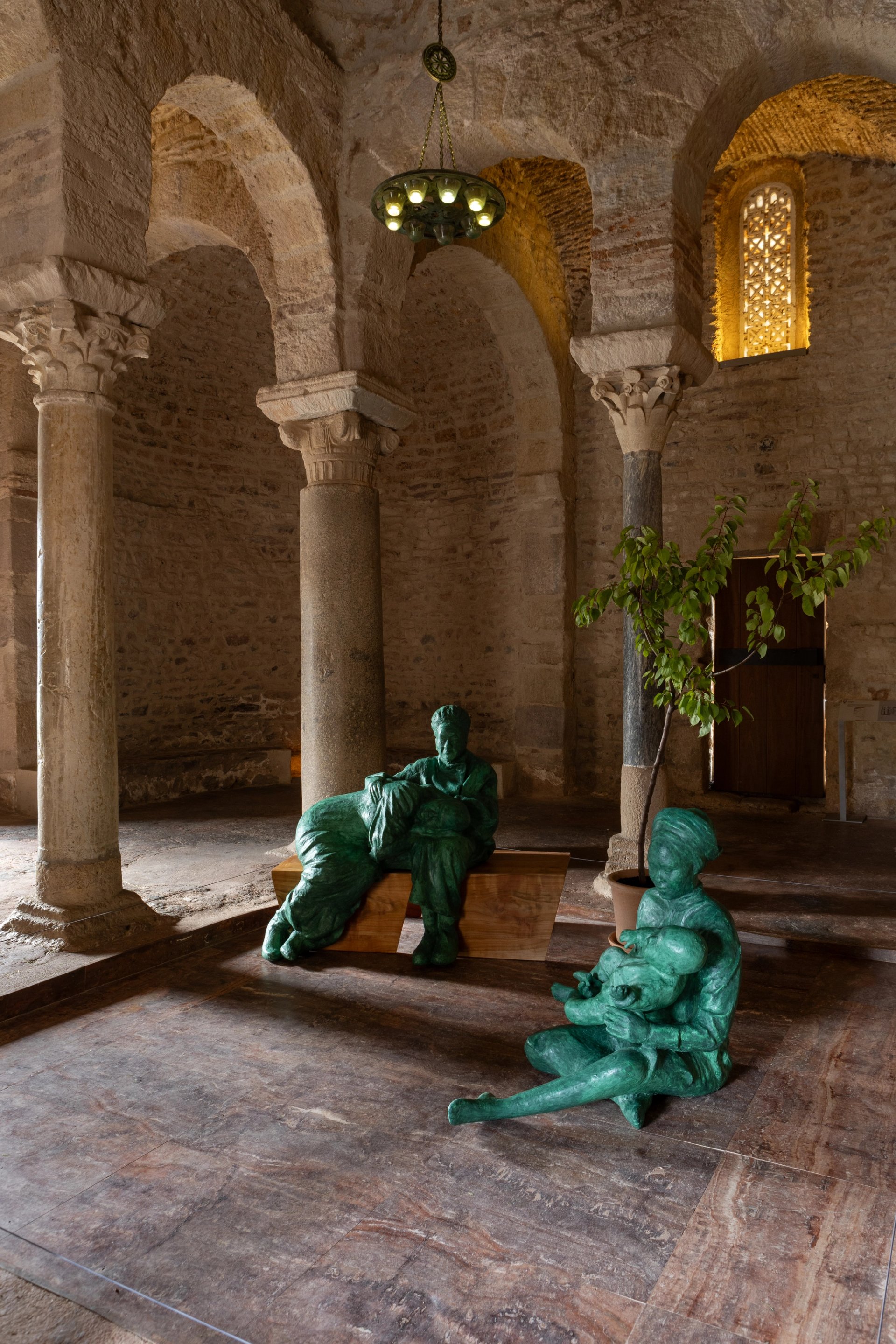 The work draws on the artist’s “humiliating” childhood memory of washing in view of others in her grandmother’s one room home, as was common in her community. And yet, by harnessing the power of art to heal, she now likens the warm, intimate atmosphere it creates among the church's pillars to a giant embrace.