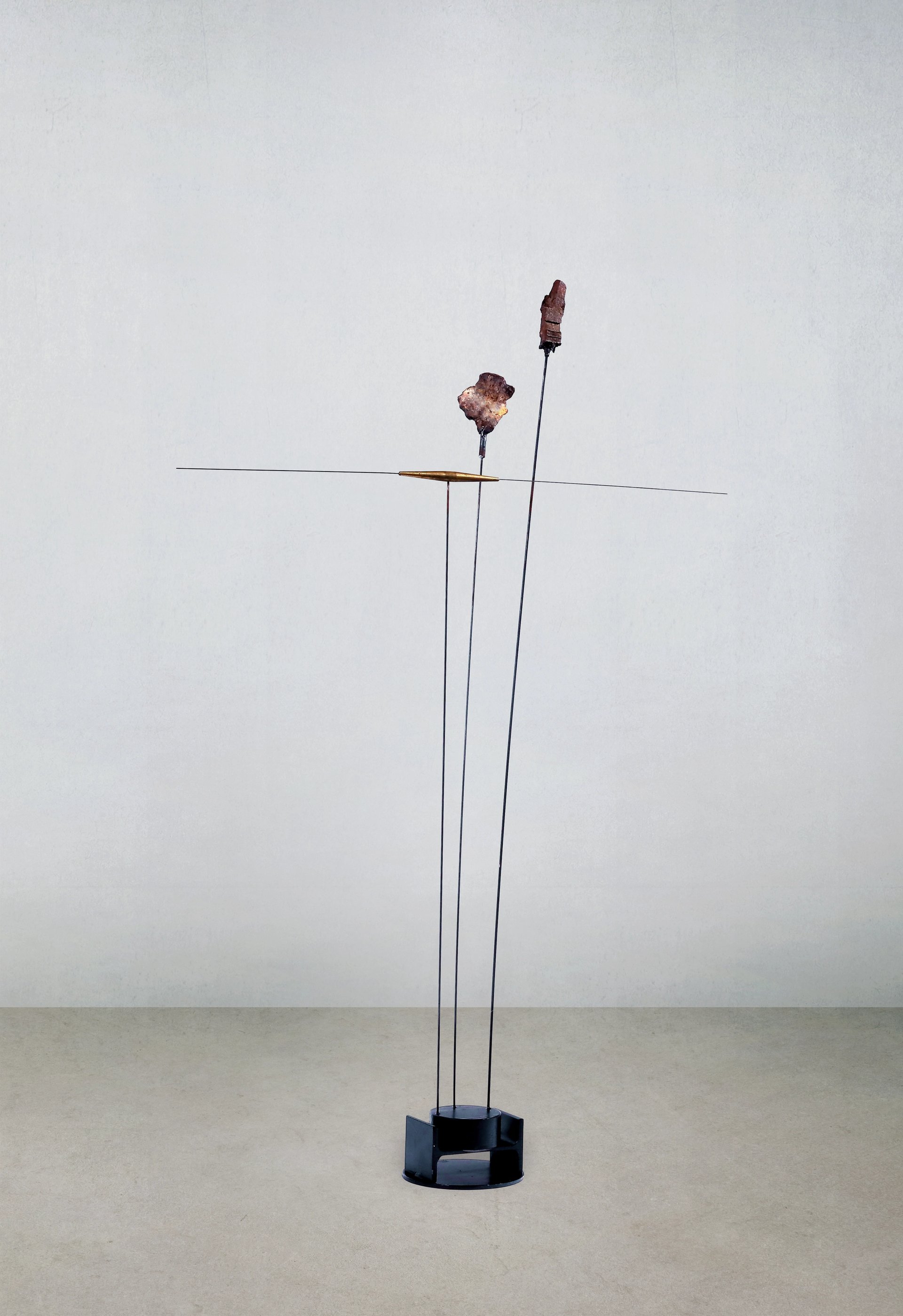 The selling show, titled Sound and Silence, includes 24 works by Takis, mostly drawn from the Emfietzoglou Gallery Museum in Athens and other private collections, alongside 18 of Dana’s, which have come direct from the artist.