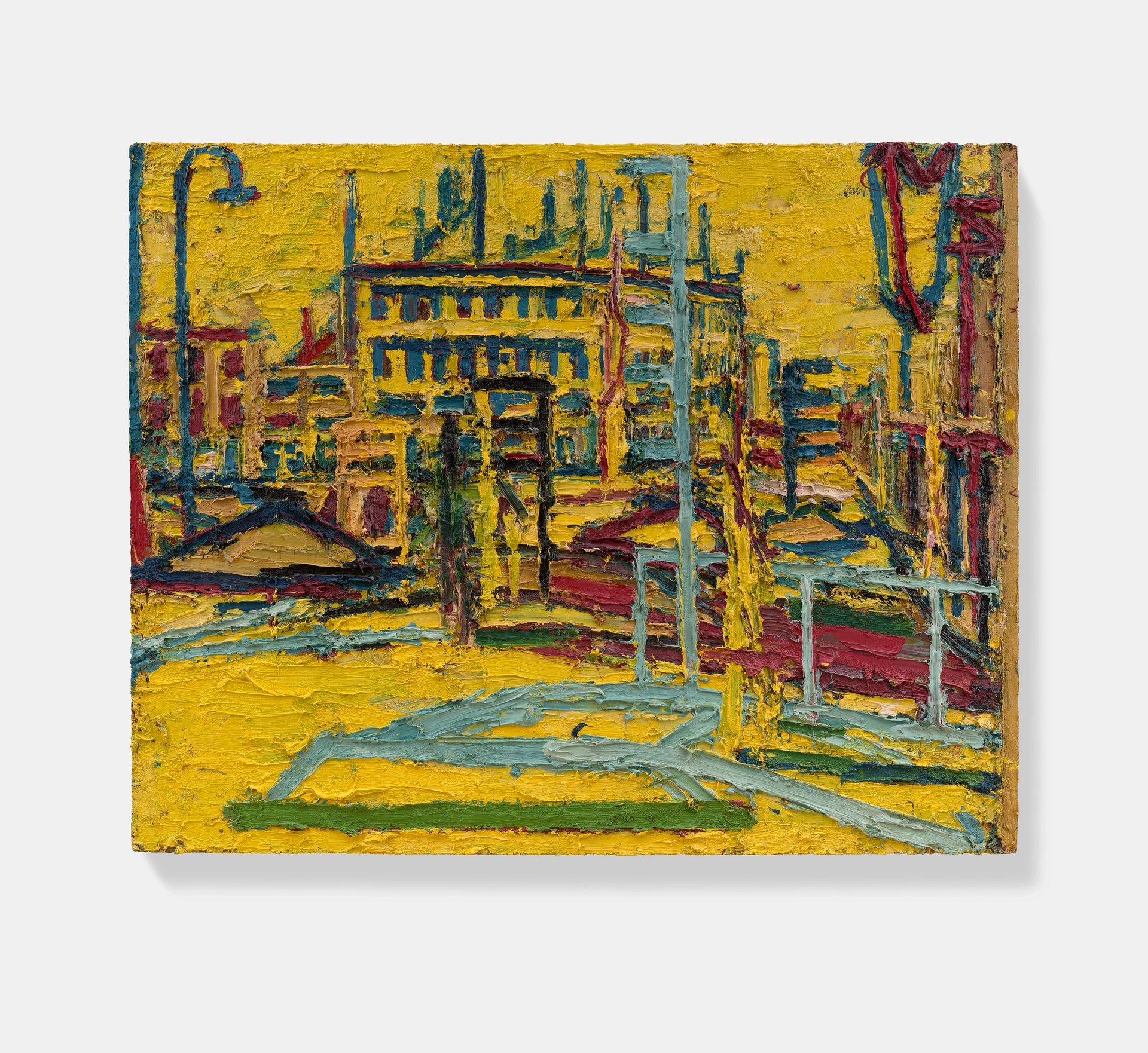 Frank Auerbach, Mornington Crescent with the Statue of Sickert's Father-In-Law III, Summer Morning (1966) © Frank Auerbach, Courtesy Frankie Rossi Art Projects. Photographer: Prudence Cuming Associates, London