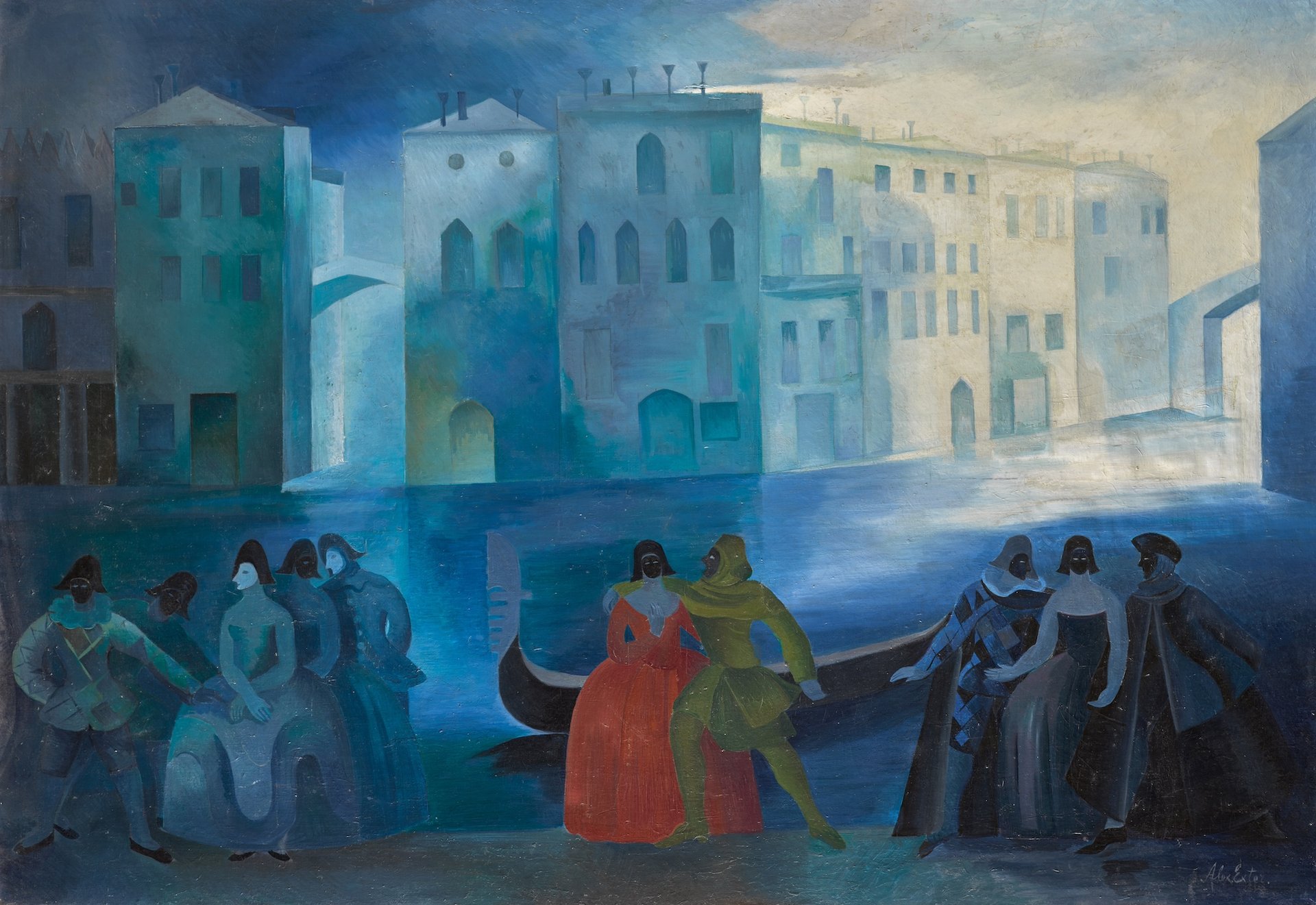 Alexandra Exter, Masked Figures by the Banks of a Venetian Canal, around 1927-29, Private Collection Courtesy the Ukrainian Museum, New York
