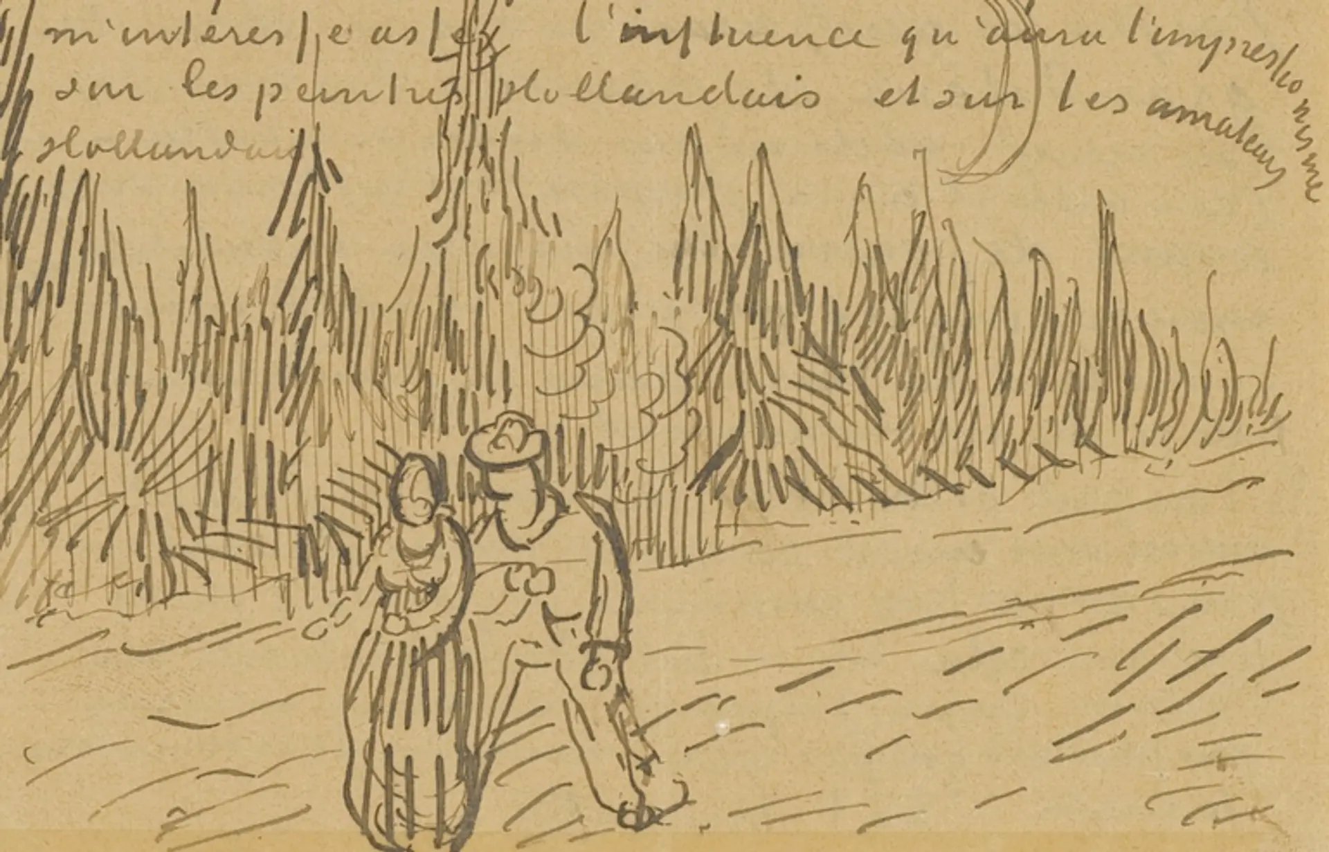 Vincent’s sketch of The Lovers in his letter to Theo, 21 October 1888