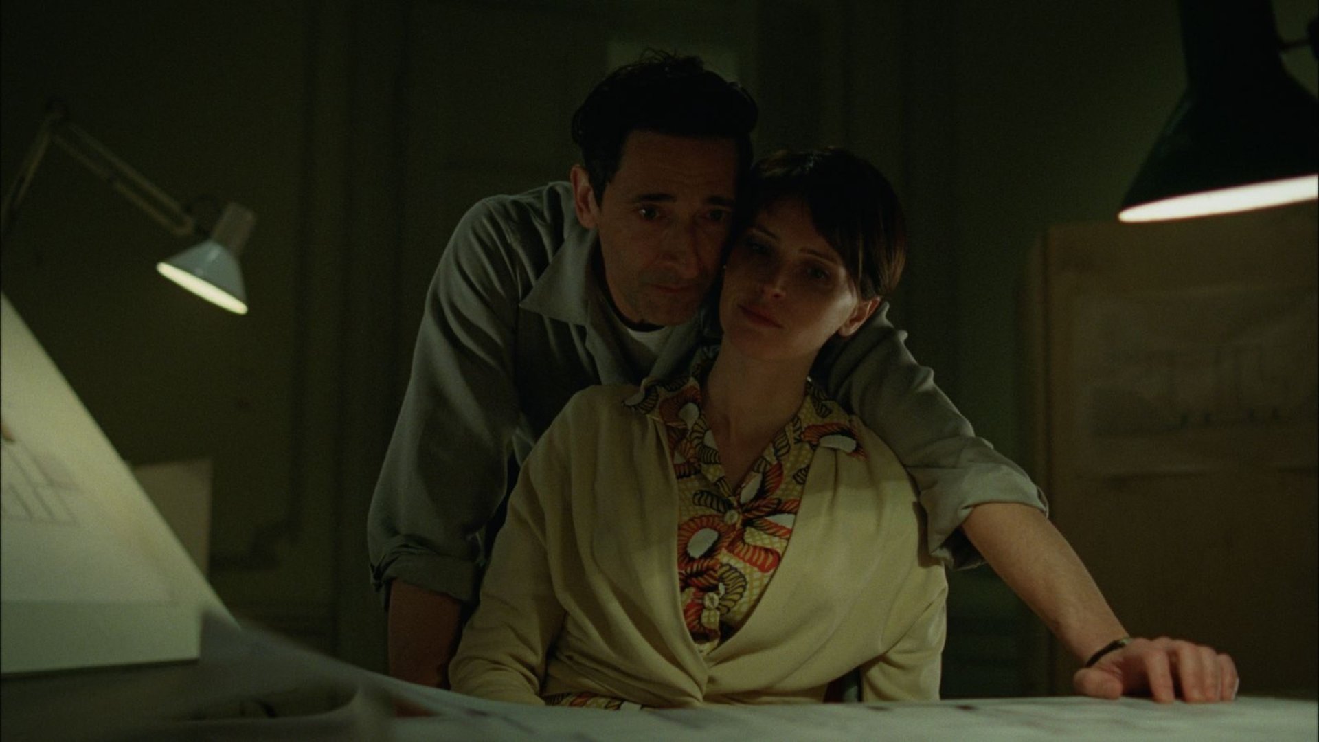 At 215 minutes including a built-in intermission, The Brutalist is heavy with the weight of the years, which roll by as Tóth’s wife Erzsébet (Felicity Jones) and largely mute niece Zsófia (Raffey Cassidy) languish in displaced-persons limbo. This background plot snaps into focus at the halfway point: throughout the intermission, a recovered family photograph crucial to their visa application stays onscreen, accompanied by a 15-minute countdown clock, a haunting reminder of Jewish life in prewar eastern Europe that will be mirrored, in the film’s second half, with Zsófia’s growing curiosity about the newly formed state of Israel.