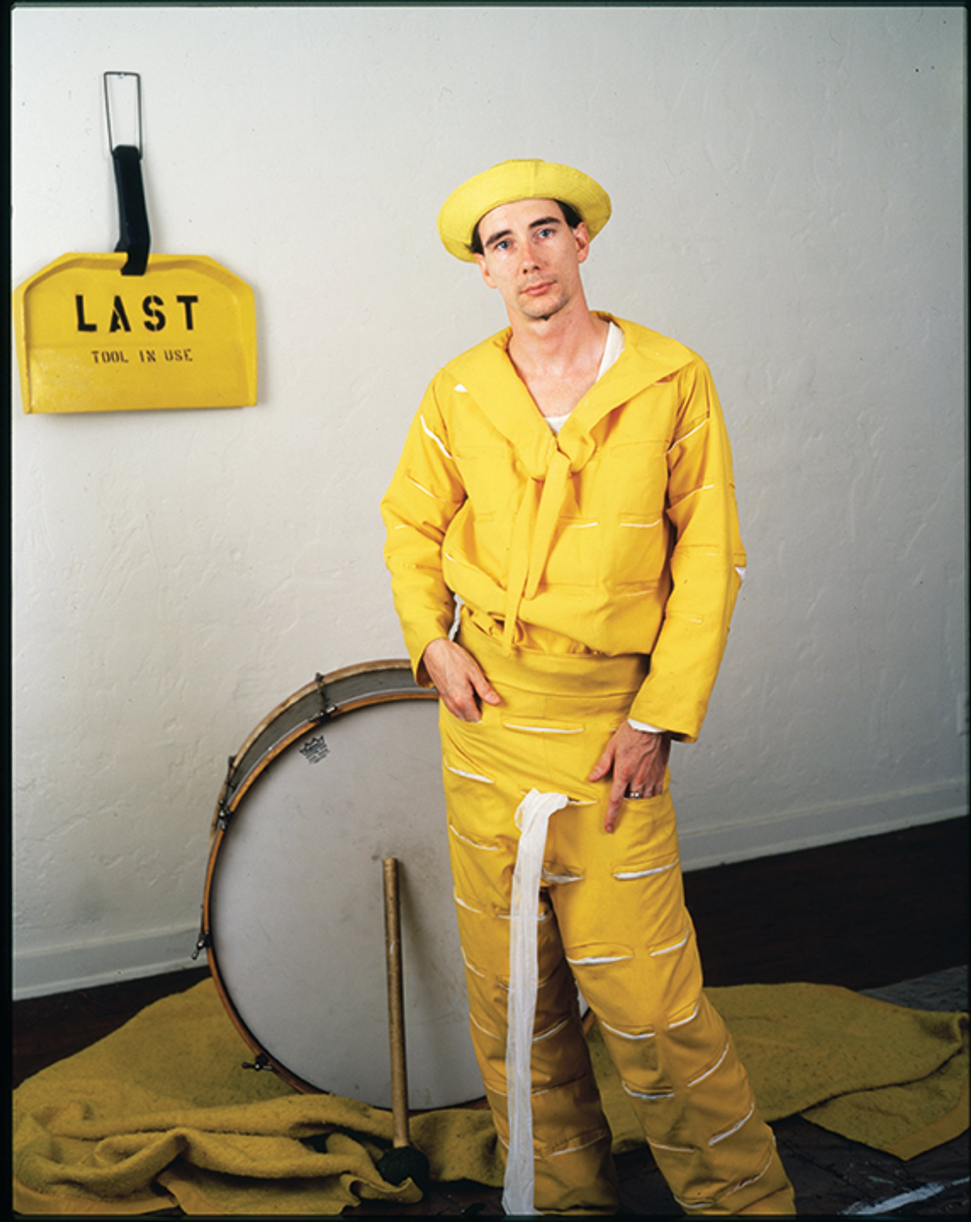 Jim McHugh’s portrait of Kelley as The Banana Man (around 1983), with Last Tool in Use (1977) in the background © Jim McHugh
