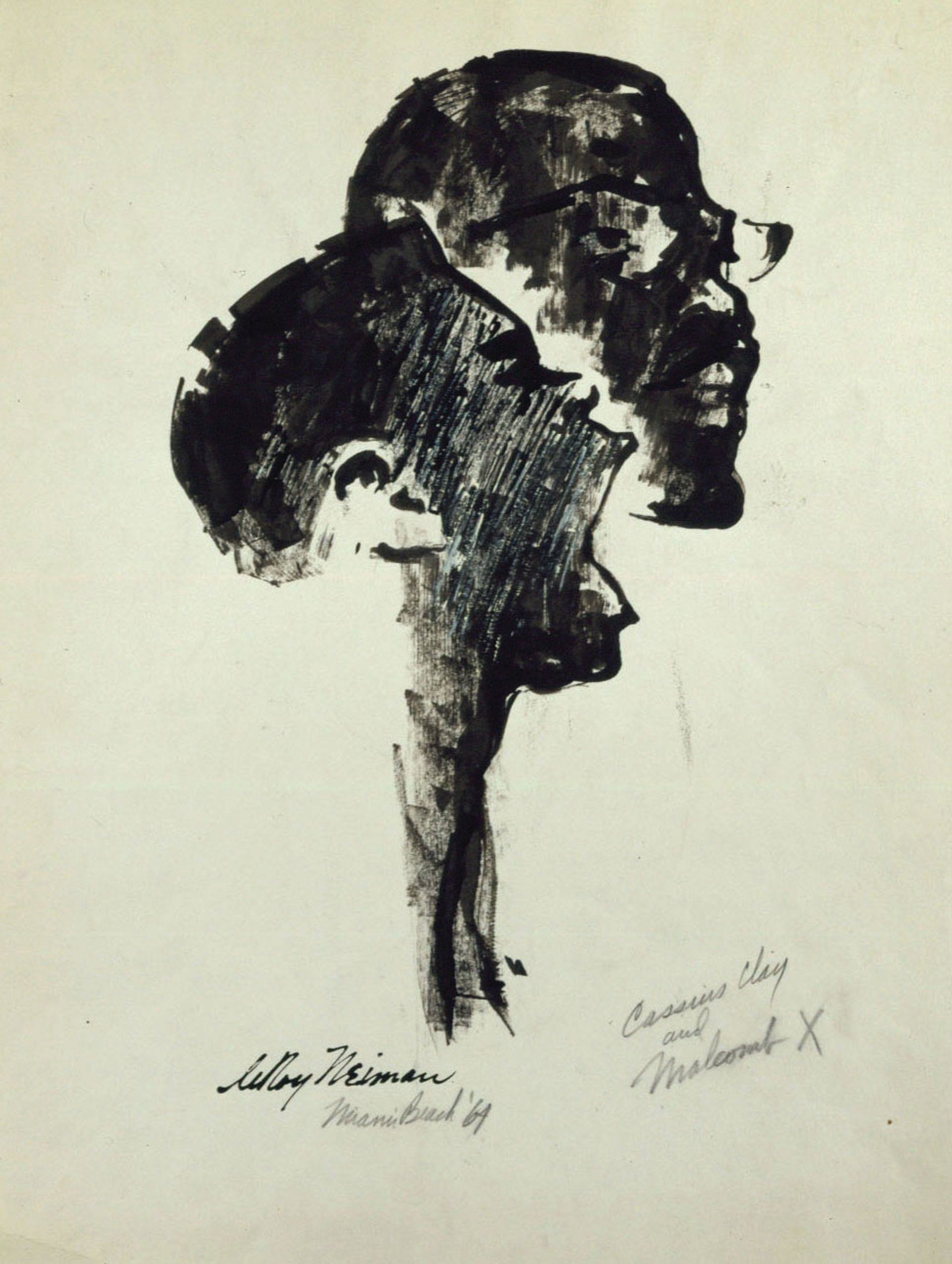 Neiman's Muhammad Ali and Malcolm X (1964) © 2023 LeRoy Neiman and Janet Byrne Neiman Foundation / ARS, NY