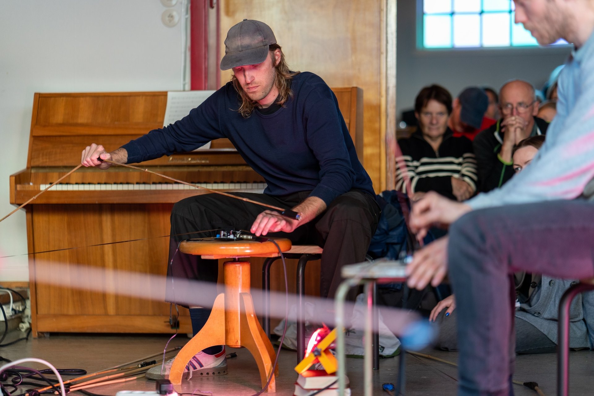 Jonatan Nilsson, a member of Elise Macmillan’s ensemble, playing Surprised Everytime (2024) Photo: Kjell Ove Storvik, courtesy the Lofoten International Art Festival