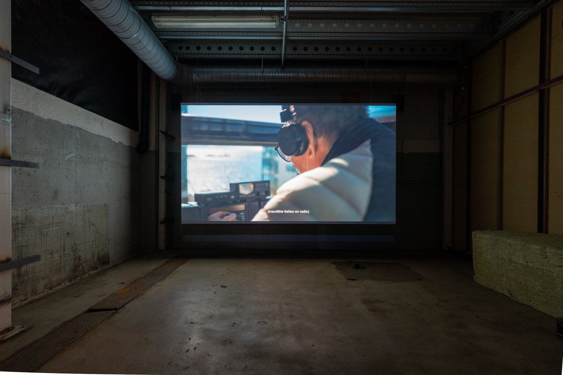 Kraftholmen provides one of the largest venues for Liaf 2024, hosting artists' talks and gatherings throughout the opening weekend as well as artmaking workshops for local children throughout the festival. Tucked into the various corners of the space are some of Liaf’s best video and film works. Astrid Ardagh’s On Air (2024) is a 20-minute documentary about a radio club across Norway’s Arctic islands, with retirees who used to work at the nation’s meteorological stations communicating with one another over ham radio and using Morse code. The group discovers just how vital this old method of communication can be when a Russian cyberattack coinciding with its invasion of Ukraine in February 2022 leads to a two-week internet outage.