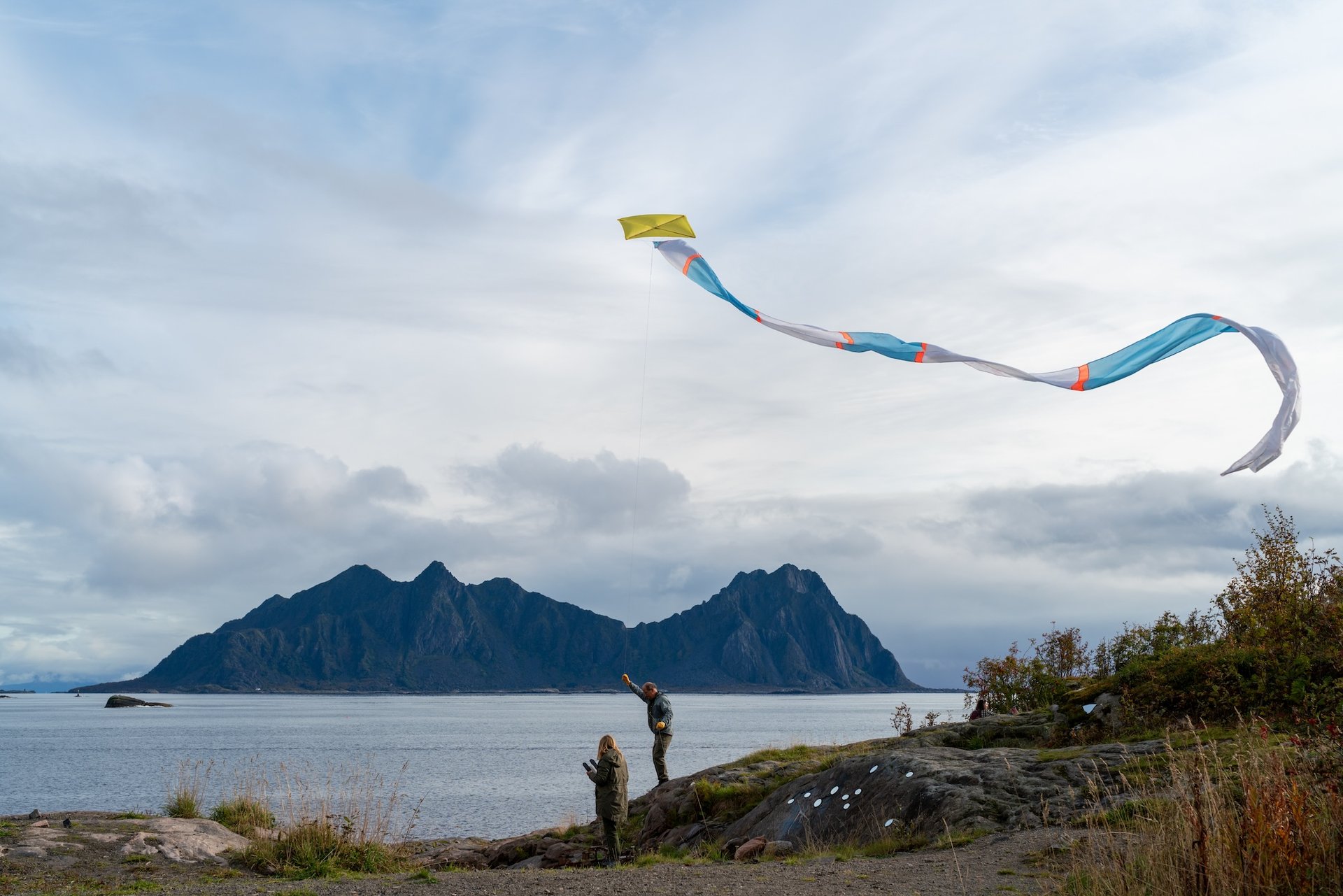Although IEIE had been “rehearsed” several times over the years, Tudor died before it could be presented in full and to his satisfaction. Liaf 2024 had the distinction of premiering the project with help from some of its original team as well as younger artists led by the scholar You Nakai, who wrote a book about Tudor. IEIE took place on the island of Svinøya, where adventurous visitors can still crawl into long-abandoned bunkers from the Second World War. During the opening weekend, IEIE presented small bits of mirrors placed all around to reflect the landscape in novel ways, kites with long tails designed by Matisse flown overhead ("painting" with help from the wind) and the all-important sound element—field recordings of the island made over the past year and played through speakers, melding the sounds of all of the island’s seasons into one, poetically collapsing both time and space.