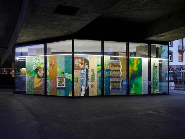 An installation view of Something Quickening, which references the sense of something moving in one’s body, with works including Eva Dixon’s Sod Off! (2024, in the window) Photo: Tim Crocker