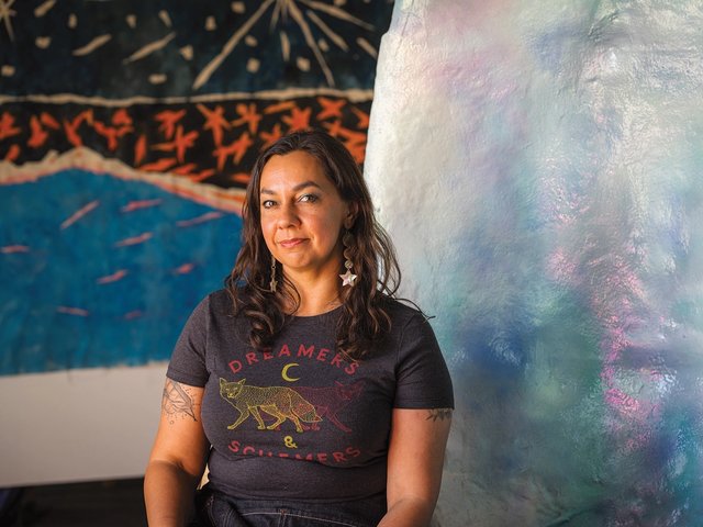 Several artists appear in more than one PST Art exhibition, but Mercedes Dorame has pulled off an impressive feat, with works in seven different shows, including two organised by Lacma: an installation in Cosmologies and photography in the forthcoming Nature on Notice: Contemporary Art and Ecology (at the Charles White Elementary School gallery, 21 December-2 August 2025). In the installation, she wants to convey "this idea of being a portal and referencing the first people of Los Angeles,” says Dorame, a member of the Tongva. The work includes multiple elements, such as “painted canvases that are kind of star mapping” and a soundscape incorporating ancestral Tongva recordings and songs. She has another installation in From the Ground Up: Nurturing Diversity in Hostile Environments(until 23 February 2025) at the Armory Center for the Arts in Pasadena. Several PST Art exhibitions are featuring her photographs taken in and around the Channel Islands, her ancestral lands.