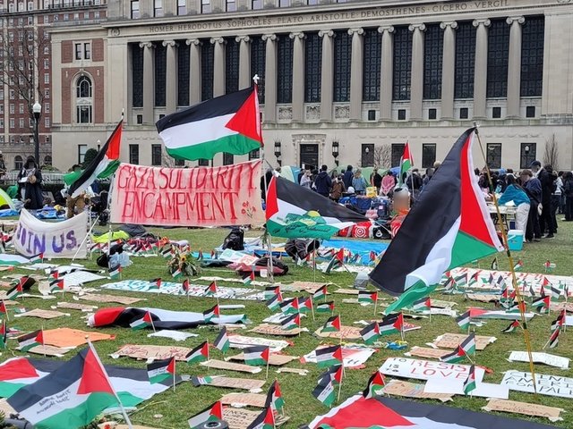 A pro-Palestine student encampment at the Fashion Institute of Technology in Manhattan Photo: Mpi099 / Media Punch / Alamy Live News