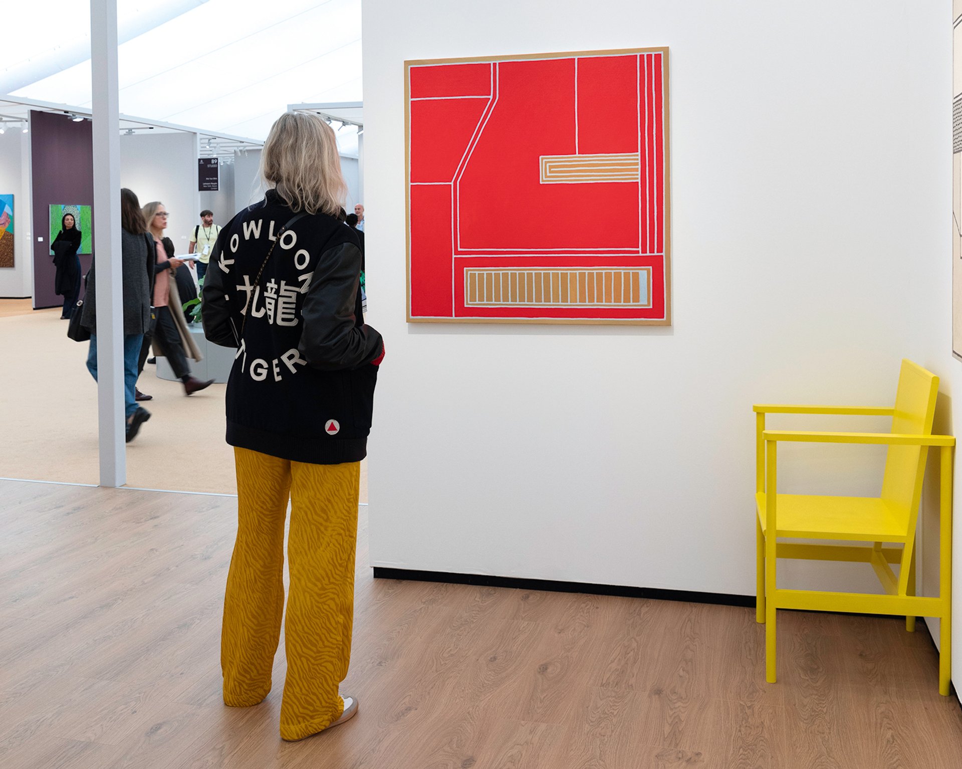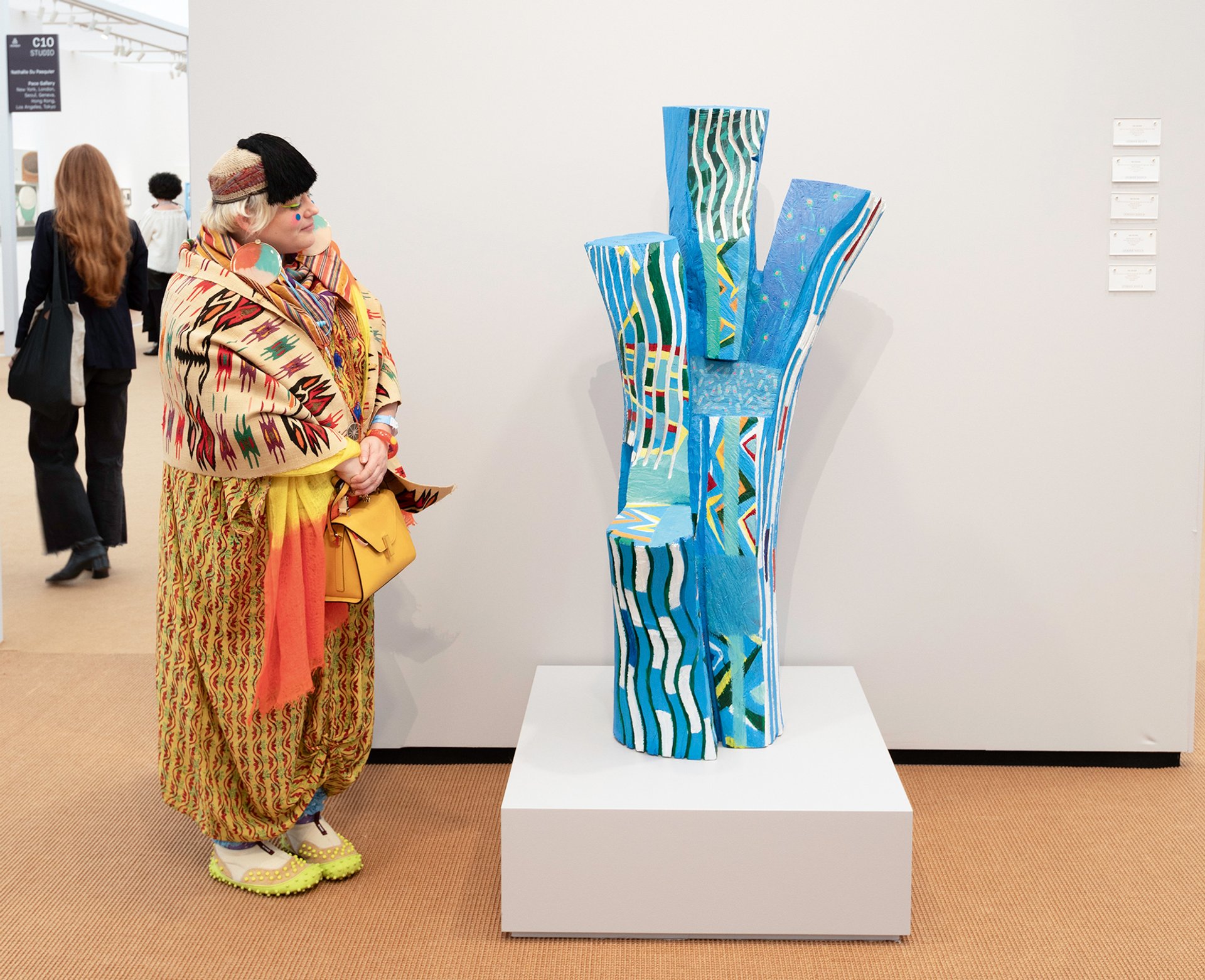 Nathalie Du Pasquier is an ex-member of the Memphis [design and architecture] Group, which was dissolved in 1987. She decided to start painting still lifes, inspired by [Giorgio] Morandi obviously, much less obviously Korean chaekgeori—19th-century painting and screens. She has done the cover of the Frieze Masters magazine, but also when you come into the fair, you will see this massive obelisk, and that is Nathalie’s whole design. It’s a whole wraparound. For the first time, Frieze Masters is indicated by a work by a living artist that is also beautiful.