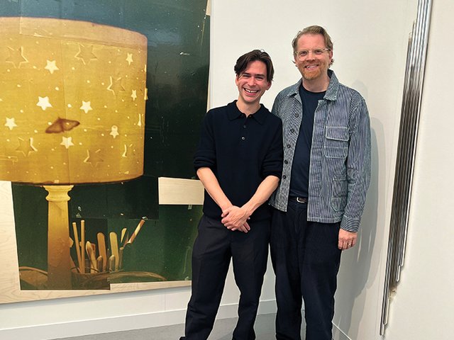 Stained-glass panels are at the threshold to Charlotte Edey’s Thin Places—wooden constructions housing compartmentalised images made with oil pastel and embroidered beadwork. The imagery captures a dialogue between interior and exterior worlds; skies with moons, staircases and rooms pregnant with psychic intensity evoke the spaces found in the paintings of Surrealists like Remedios Varo and Dorothea Tanning. Edey’s images are mostly unpeopled but a bodily presence looms large, with ribbon-like arms and hands, and openings that could be orifices as much as architectural apertures. Indeed, circles—moons, glass orbs or bubbles, clock faces—are a consistent rhythm through Edey’s atmospheric universe.