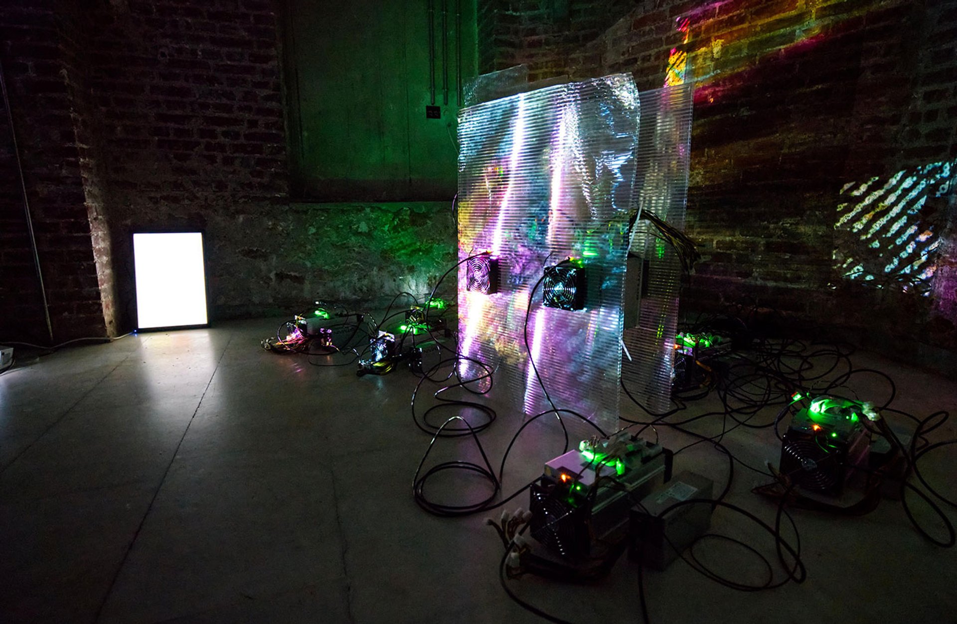 The Swiss artist Lukas Truniger created Undergrown, a project repurposing obsolete crypto-mining hardware for volunteer science projects, which would otherwise have become e-waste. The installation plays symphonies of cooling fan noises—a nice pre-echo to the cooling-fan instrument at Holly Herndon and Mat Dryhurst’s exhibition, The Call, now on at Serpentine North, in London—and exploring parallels between human and plant communication networks. “It is hacked,” Truniger writes on Instagram, “to participate in scientific volunteer computing and thus contributes a tiny bit to reduce our existential planetary risks exposure.”